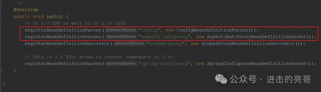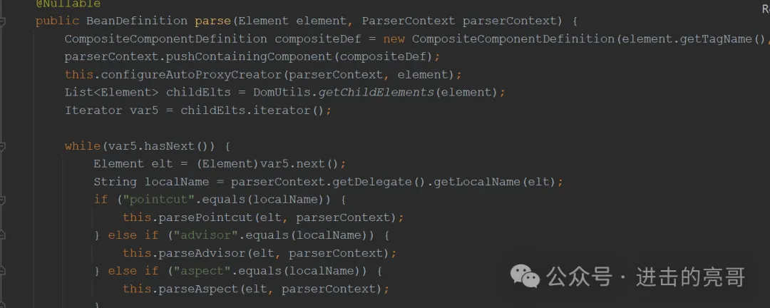 说明:针对不同的标签(aop冒号后面的部分),注册对应的解析类,并在下一步解析时使用