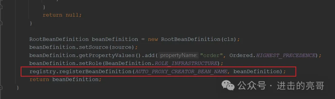 说明:一直走到AopConfigUtils#registerOrEscalateApcAsRequired()方法,手工注册一个BeanDefinition对象