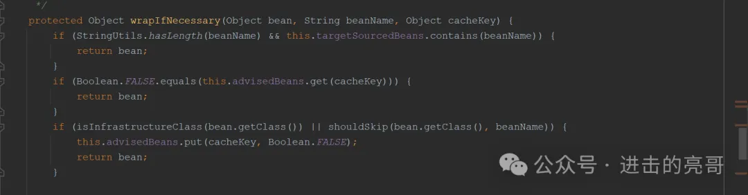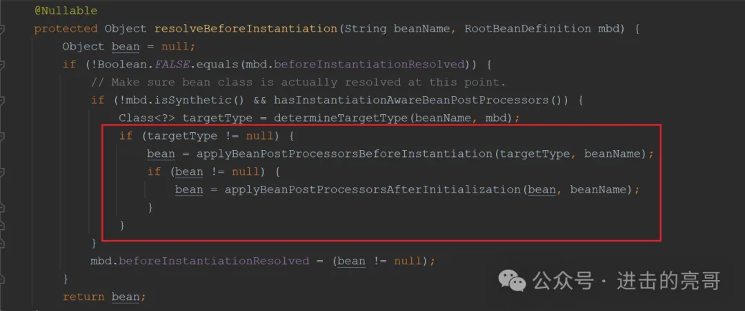 说明:只有当bean是代理类时,才会进入画红框架的第二个判断