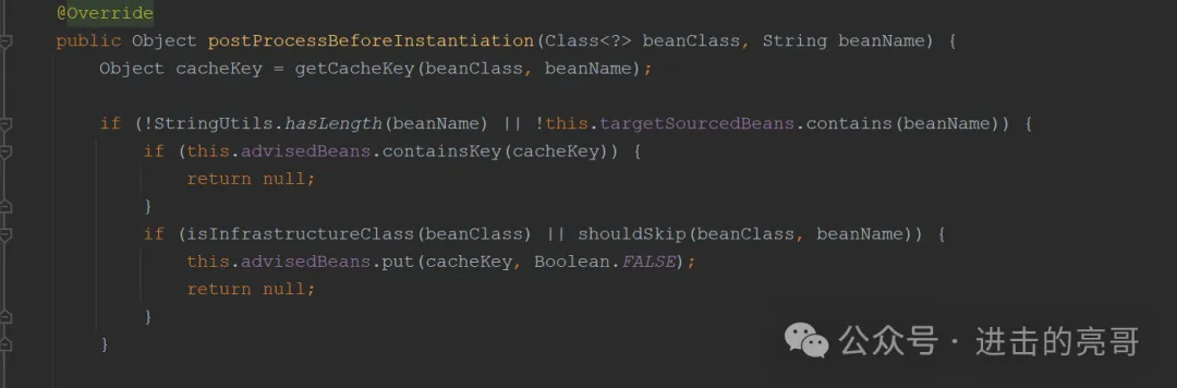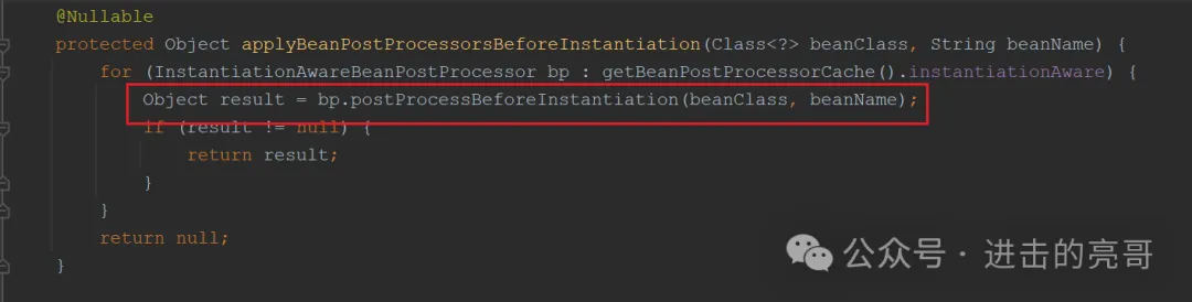 说明:循环所有的BeanPostProcessors去处理,这里说一下AbstractAutoProxyCreator#postProcessBeforeInstantiation()