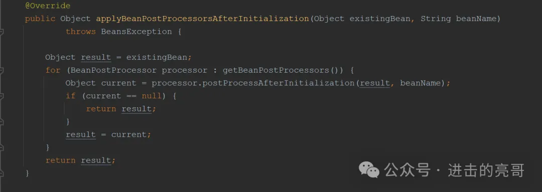 2、applyBeanPostProcessorsAfterInitialization()