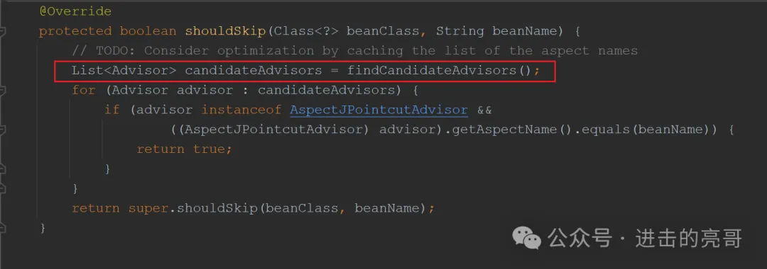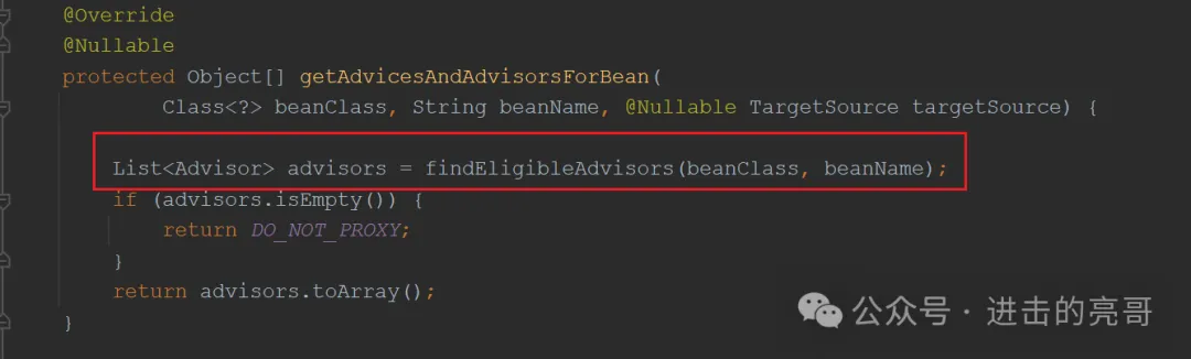 说明:条件都不满足,调用getAdvicesAndAdvisorsForBean()方法