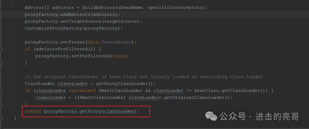 回到wrapIfNecessary()方法创建代理对象的调用处