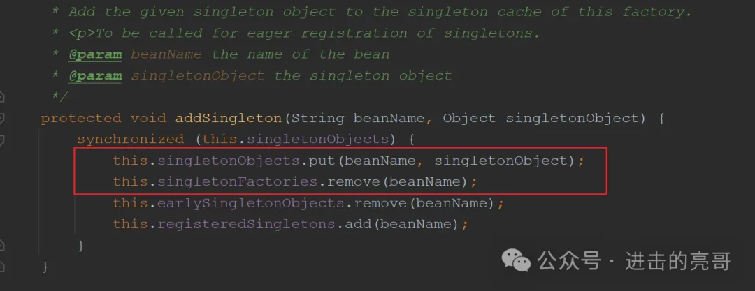 说明:此时对于id=”bank”的beanName来说,放入一级缓存的是代理对象,而从三级缓存中去除的是目标对象,这样就完成了暴露过程。