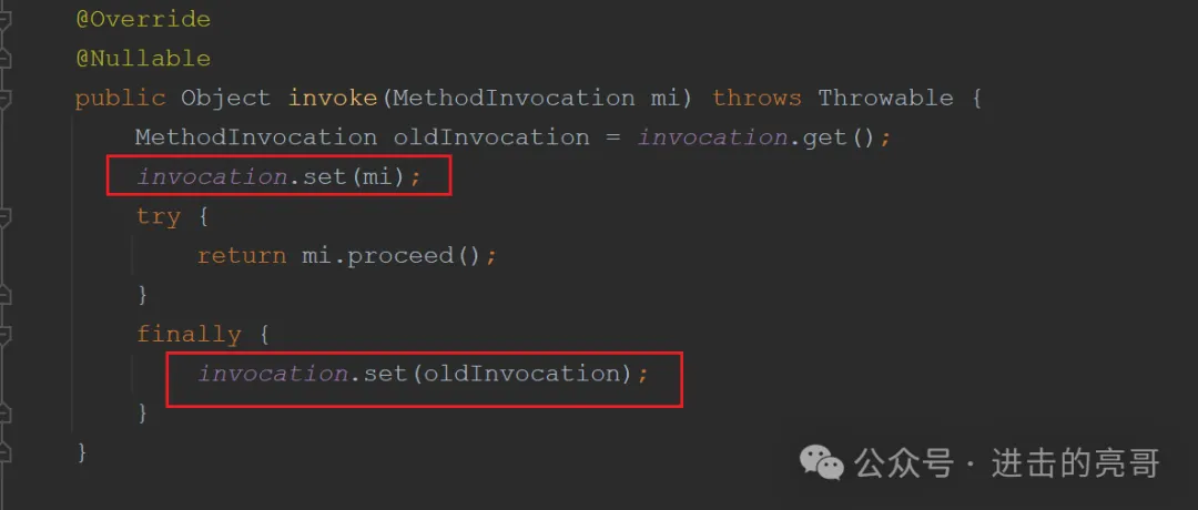 说明:知道为什么要增加这个类,而且把它放在第一个了吗?对,线程安全,毕竟可能会存在多个拦截的方法。