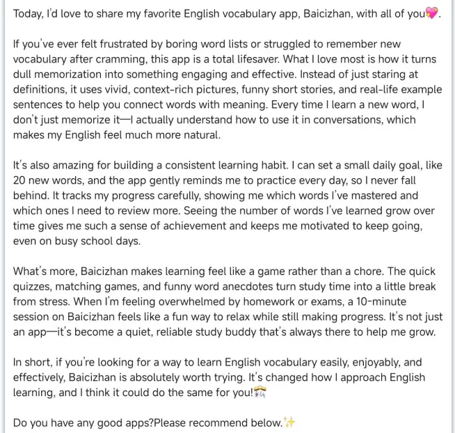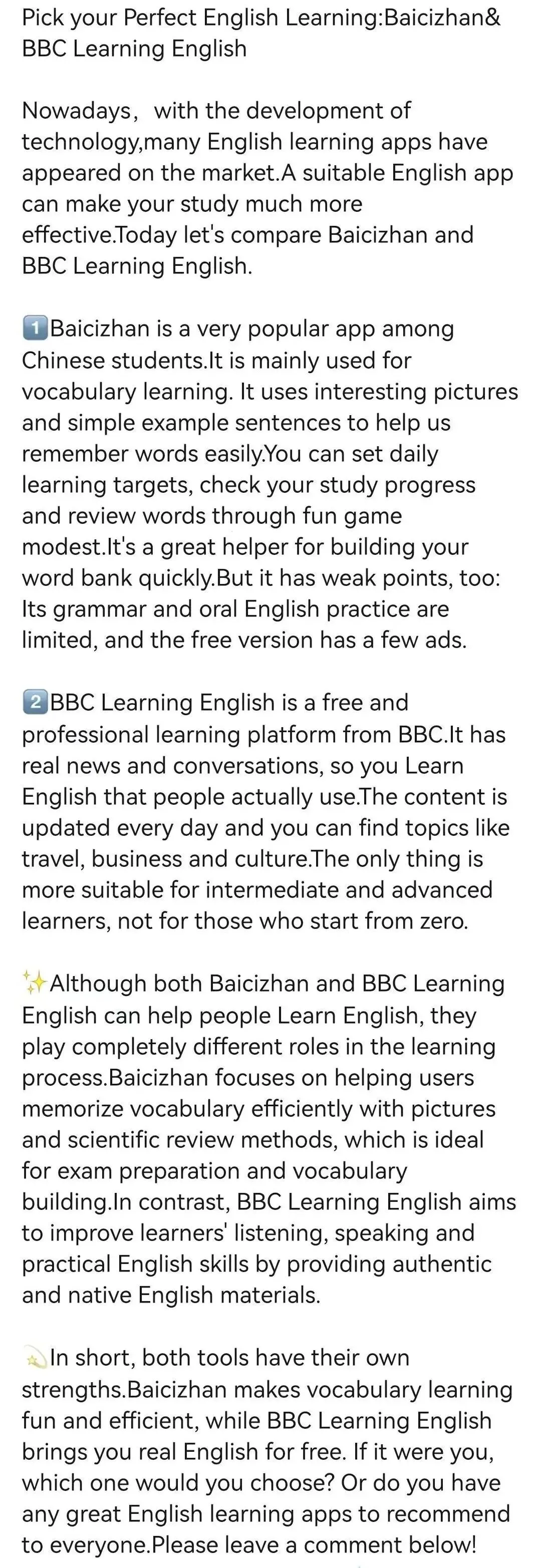 【投票啦!】谁是你心中的APP“宝藏推荐官” 01 Baicizhan 02 Liulishuo English & NetEase Cloud Music 03 Bubei Danci 04 Daily English Listening 05 Baicizhan & BBC Learning English 06 TED 07 Crazy Word Reciting 08 Bilibili 09 Vocabulary Victor 10 Crazy Question 请投下您宝贵的一票