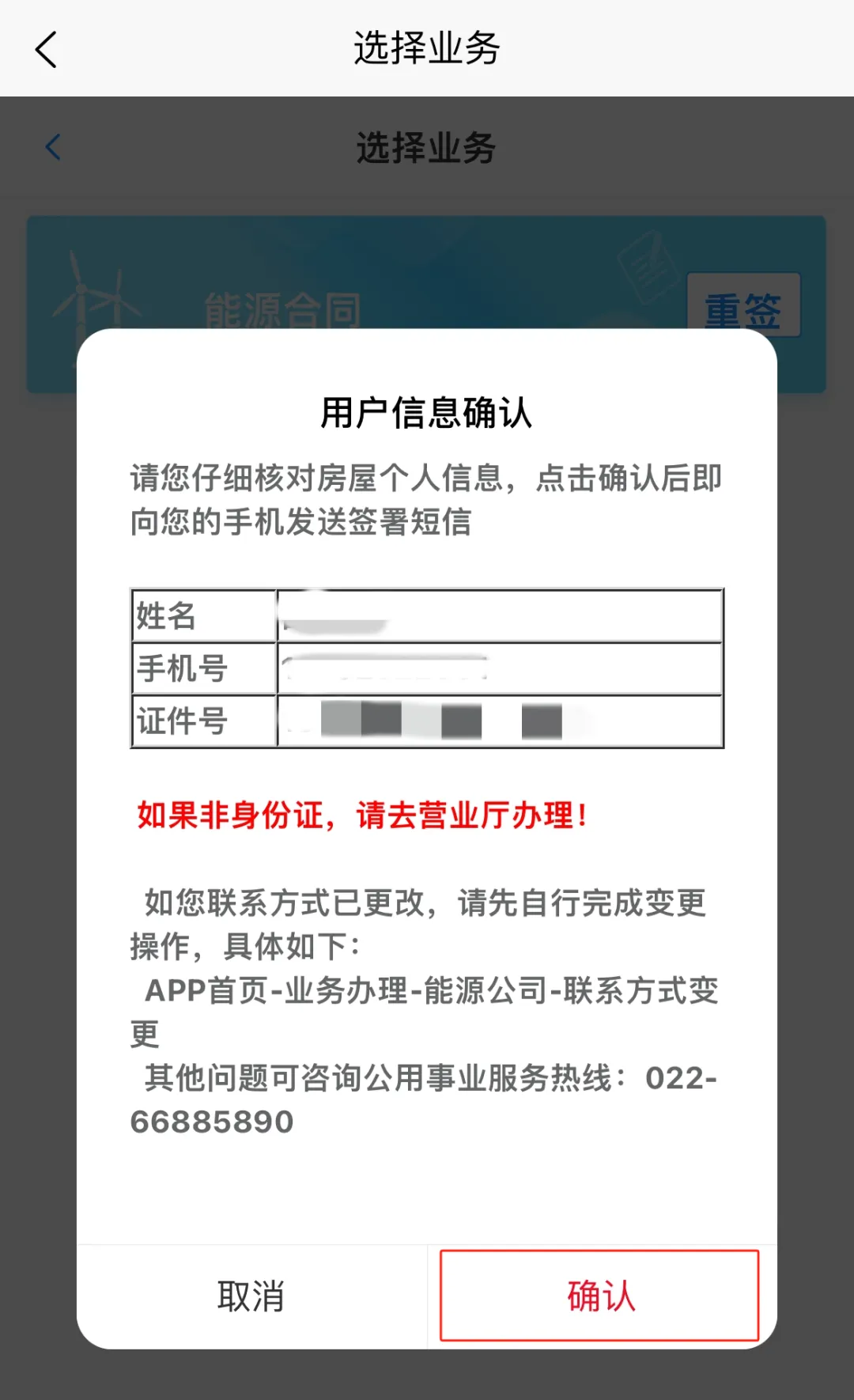 如无法通过5890APP完成重签合同的用户,业主持身份证原件或代办人提供业主与代办人身份证复印件、代办委托书至营业厅完成重新签订能源合同。