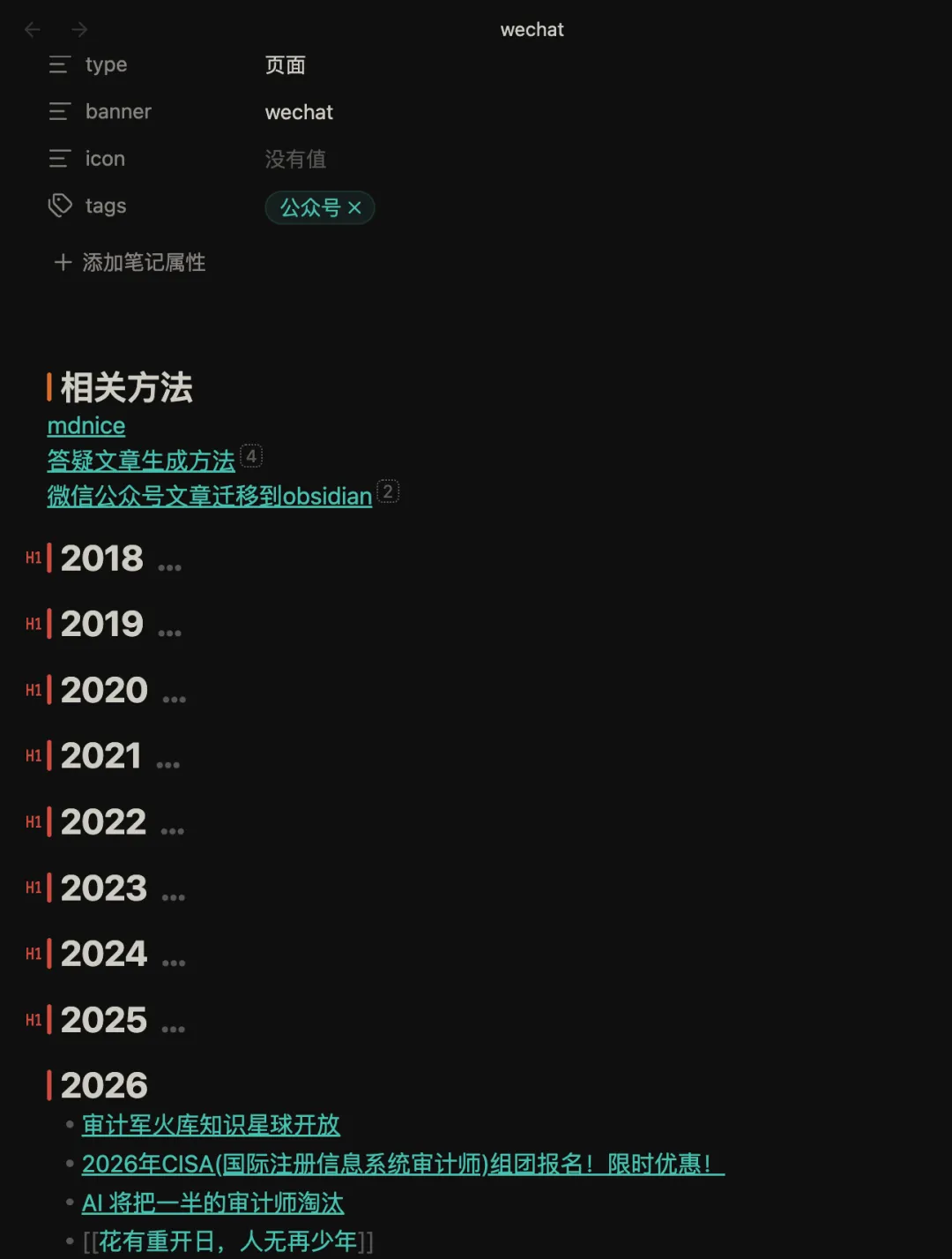 这让我迁移到 Obsidian 的时候完全也可以通过 笔记属性 来实现。