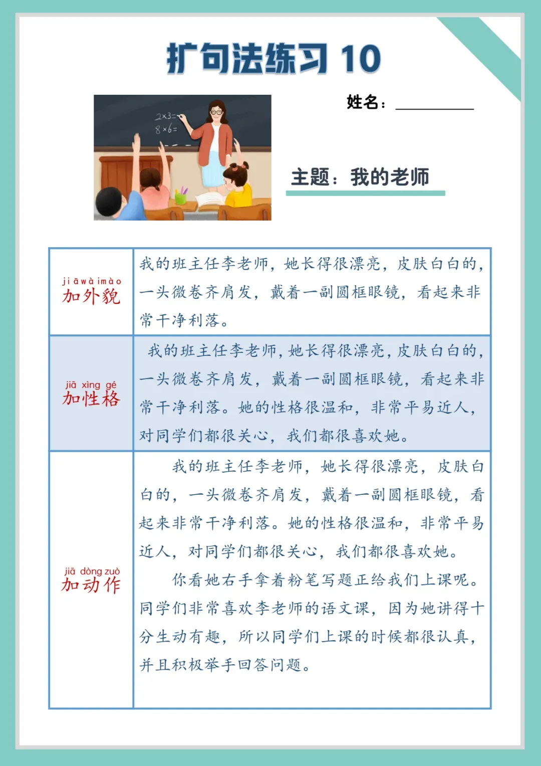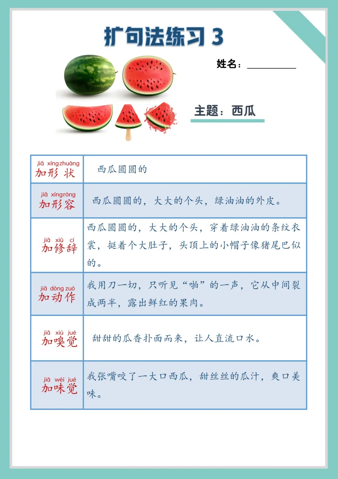 小学语文《扩句法练习》写作专项练习纸(可下载打印)扩句写作,看图写话,作文素材积累
