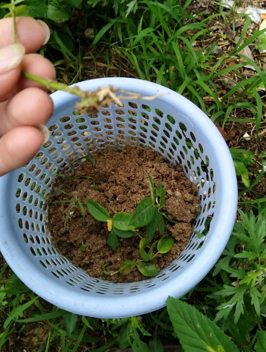 再拔一根看看,也生根了···篓子里的月季枝条,基本都生根了,可以移栽到正常的盆里啦。