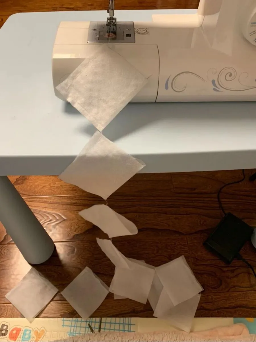 先把无纺布做成开口的小口袋,如果是茶包、竹炭包之类的大小刚好,只要有个开口就行了。