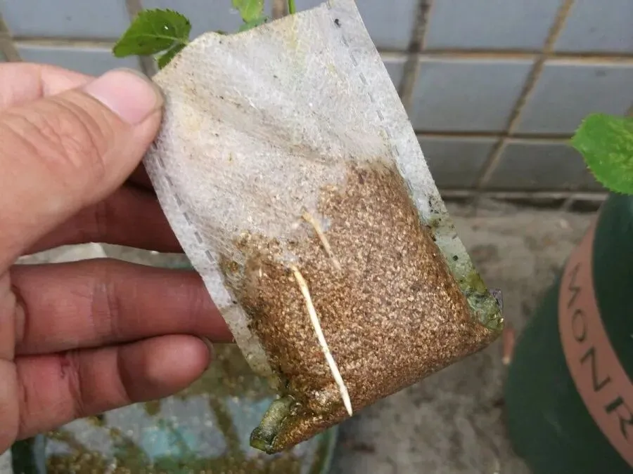 等看到根系明显长出来之后,就可以拆掉无纺布包了,把小苗重新栽在沙土或者椰砖土里假植半个月-1个月,等苗比较稳定的时候,就能移栽到小花盆里正常养护啦。