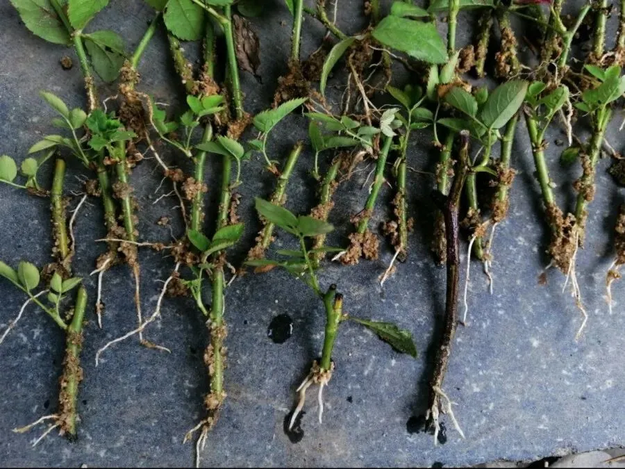 15-20天后,拔出一根月季枝条,已经生根啦。