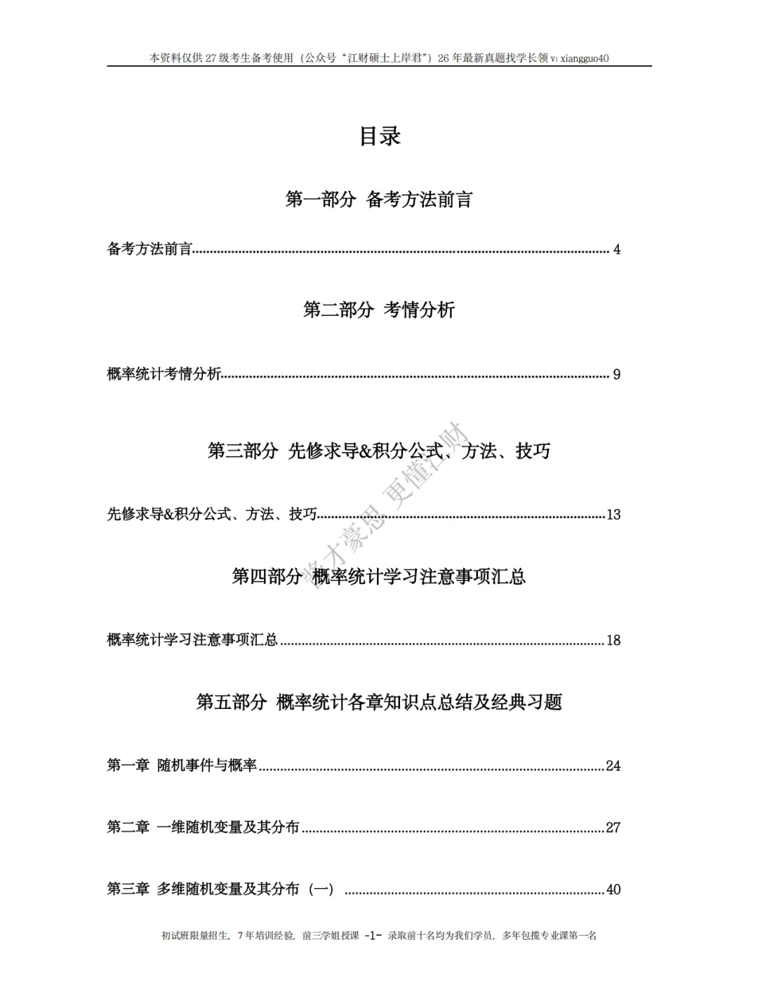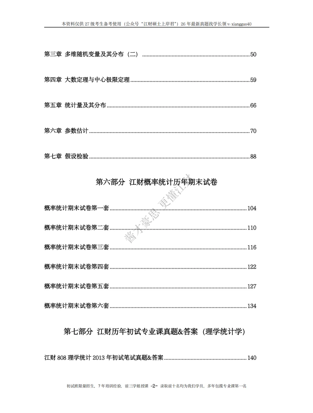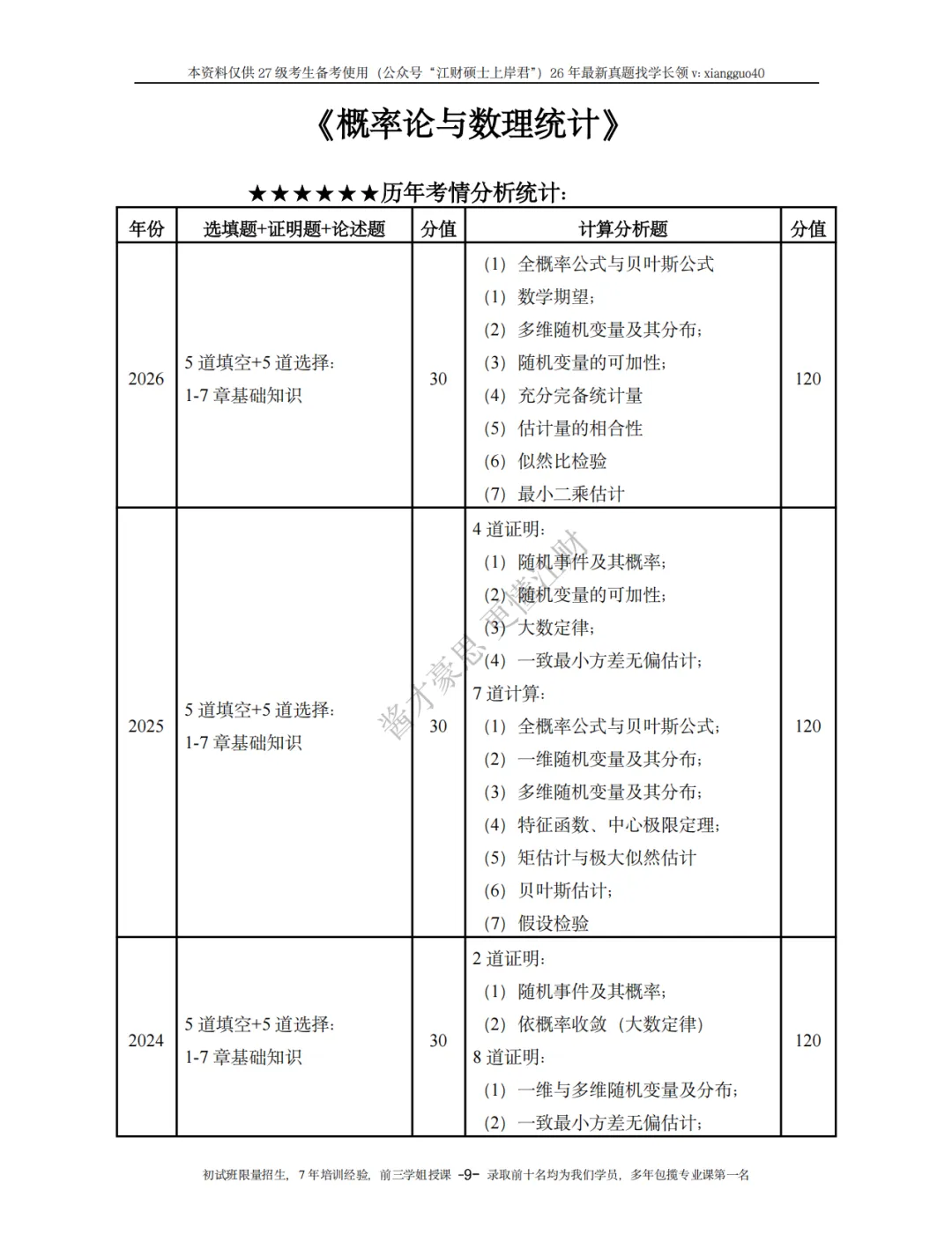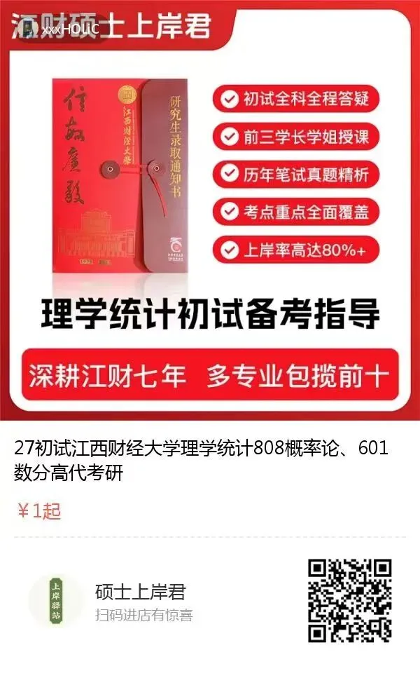 (专业课神器)一分钟了解27版江财808、601理学统计初试一点通~