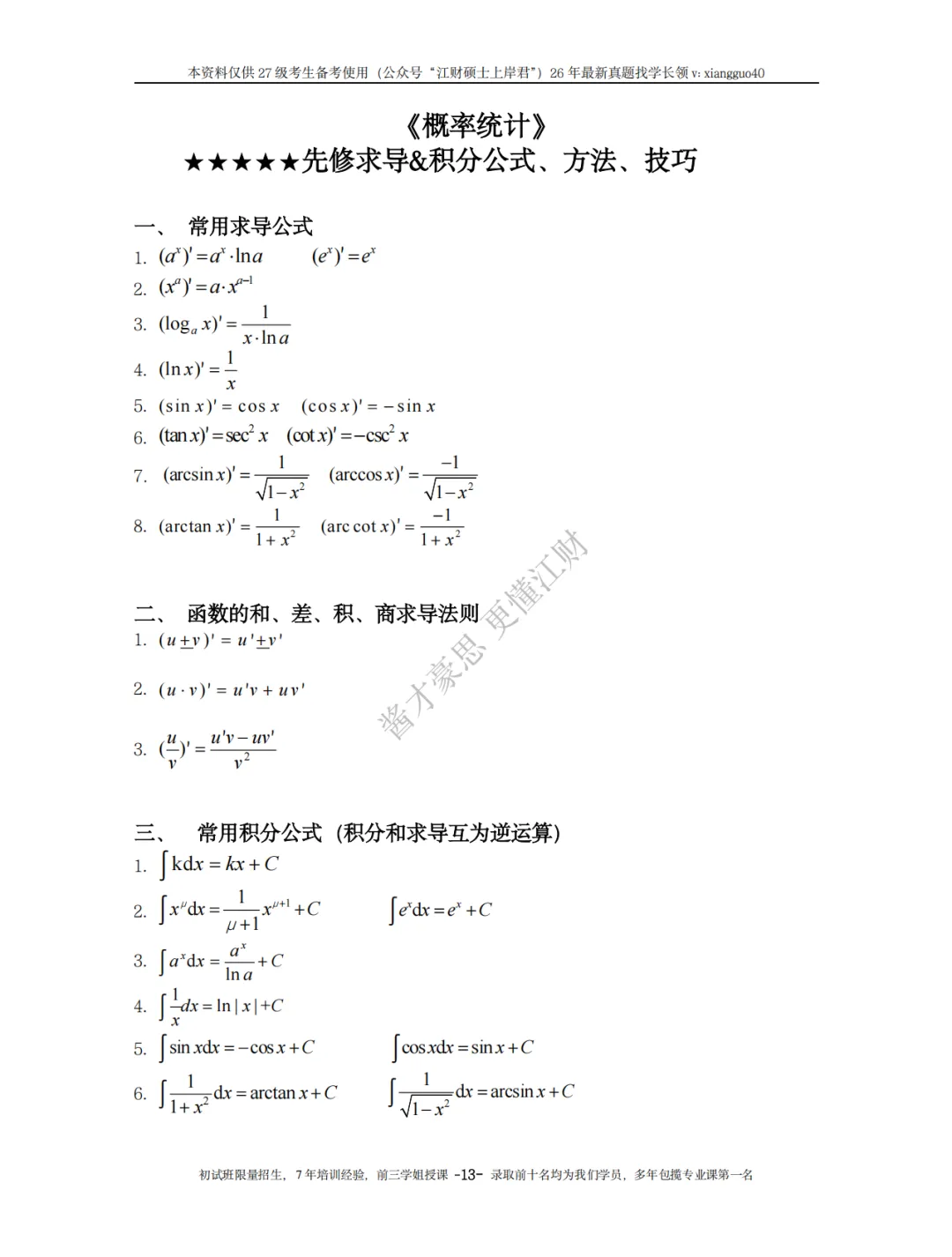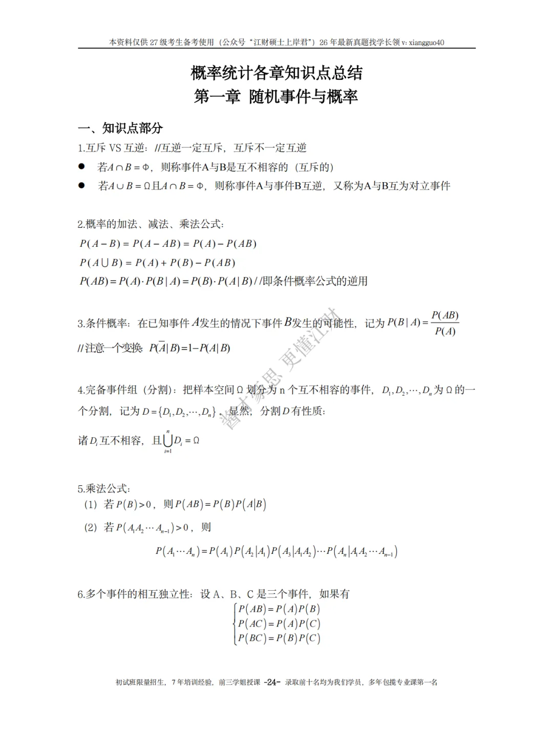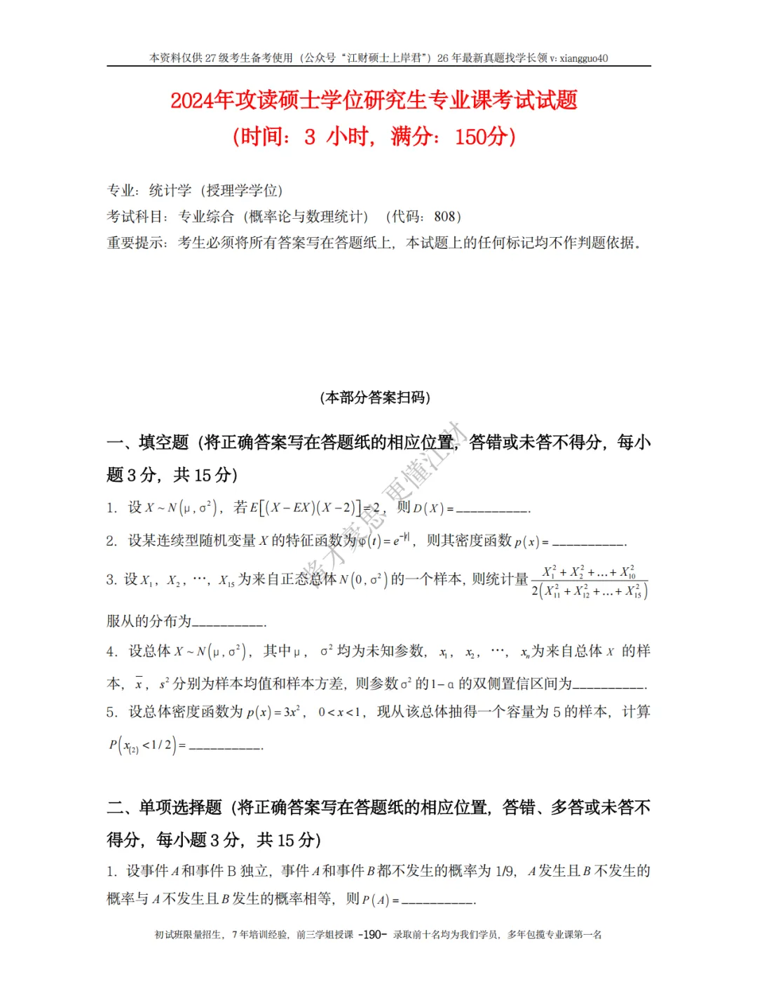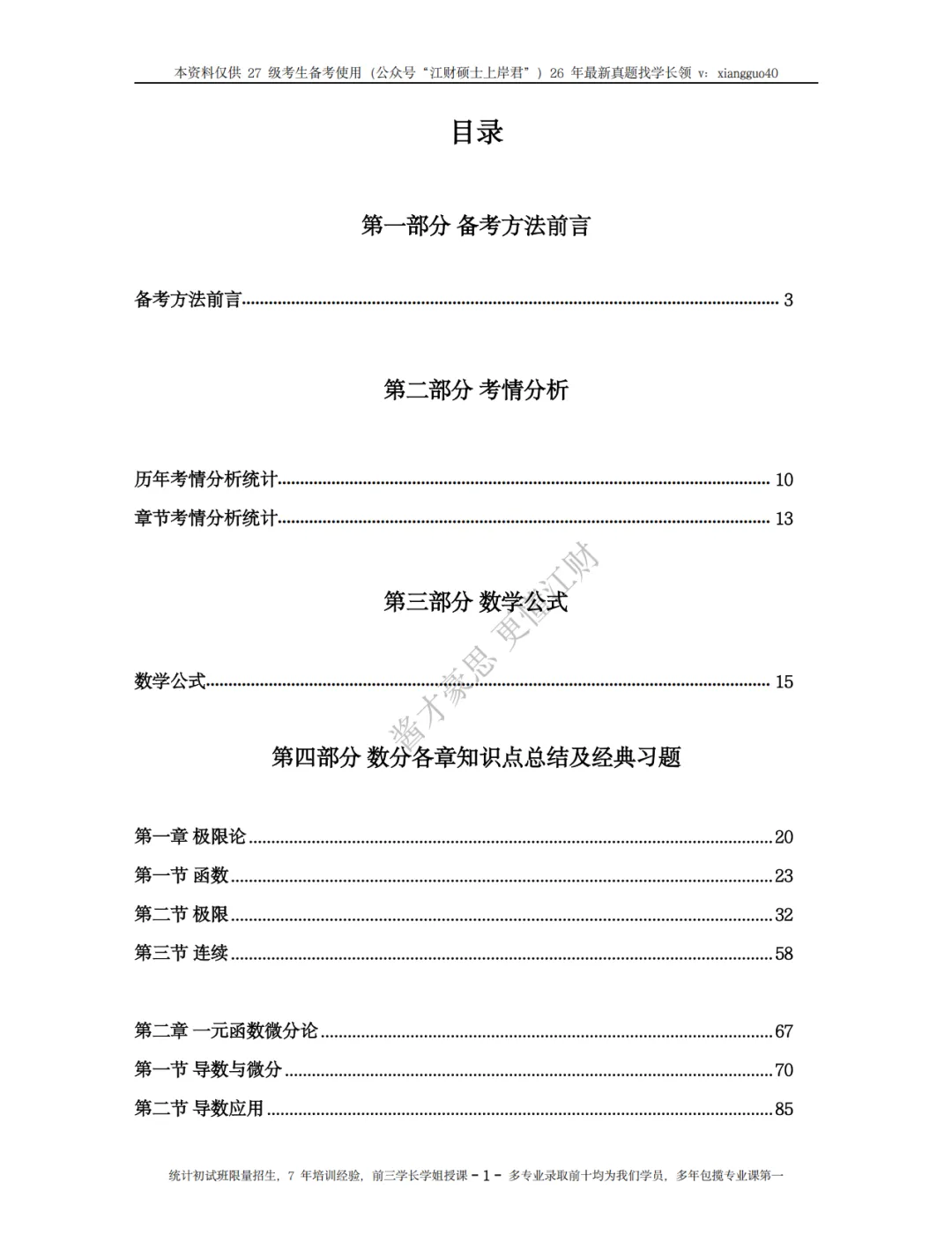 (专业课神器)一分钟了解27版江财808、601理学统计初试一点通~
