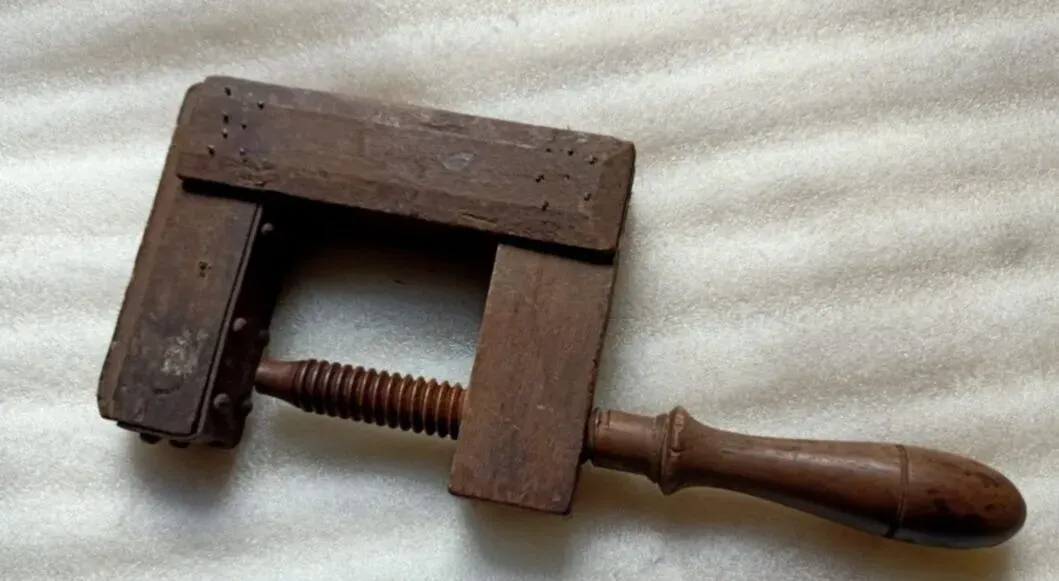 它的原理很有意思,通过螺杆拧紧发力,带有齿的夹板就能牢牢抓住书页,把零散的纸张压平、夹紧。
