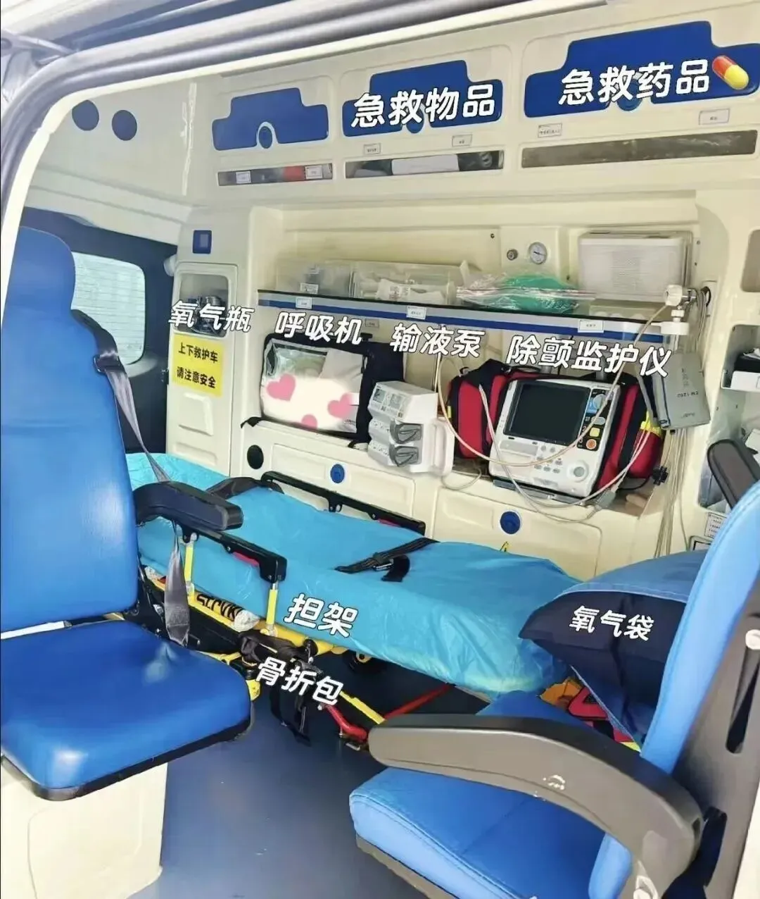 车辆:定期消毒、设备校准(氧气、监护仪、担架等)