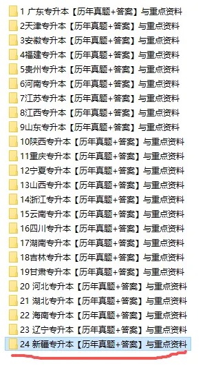 一、专升本【历年真题20-25年+重点资料】按照全国各省整理