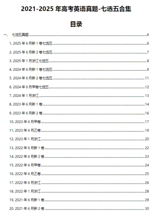 21-25年高考真题七选五合集