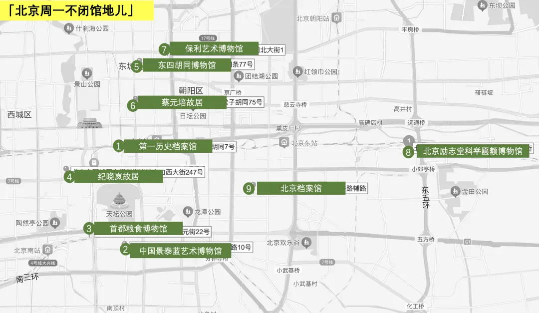 )、周一不闭馆的场馆,涵盖博物馆、故居,还补充了新挖掘到的藏着北京记忆的北京市档案馆(攻略还没出),方便大家随时就近打卡。