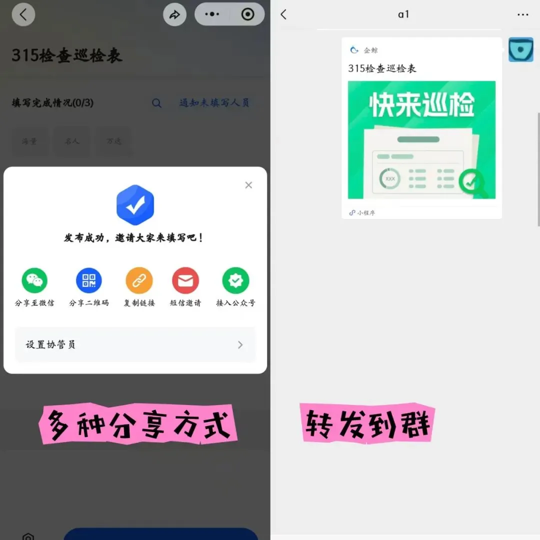 企鲸操作超简单,几百个现成模板覆盖各行业,不用下载 APP,搜索就能用,发布后直接转发给相关人员。