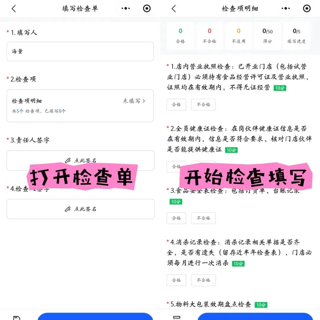 巡店前:不用额外准备工具,在企鲸里提前备好检查单就行;