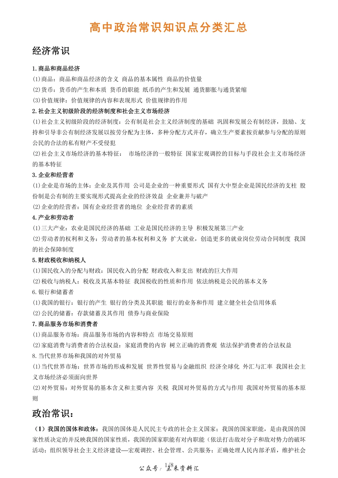 高考政治|常识知识点分类汇总(可下载打印)