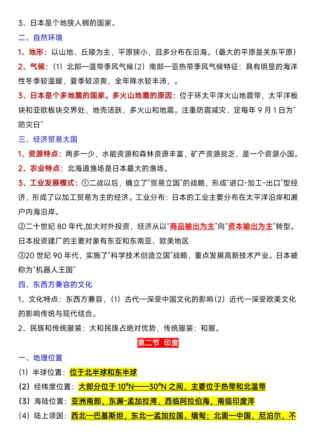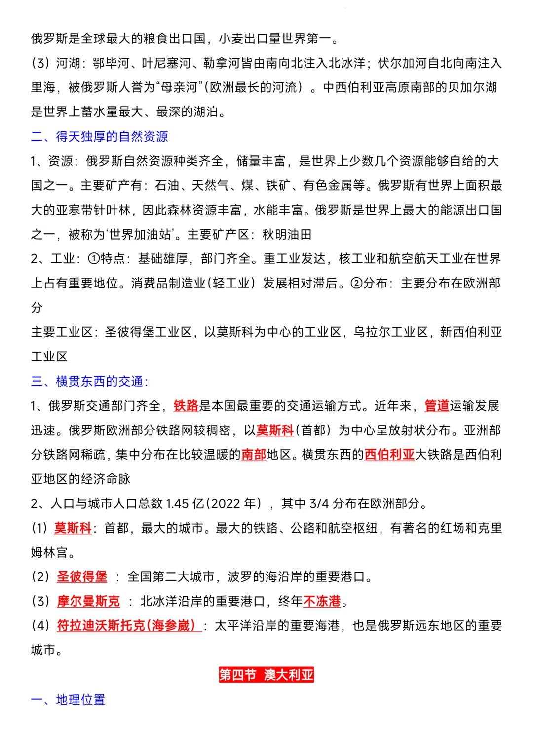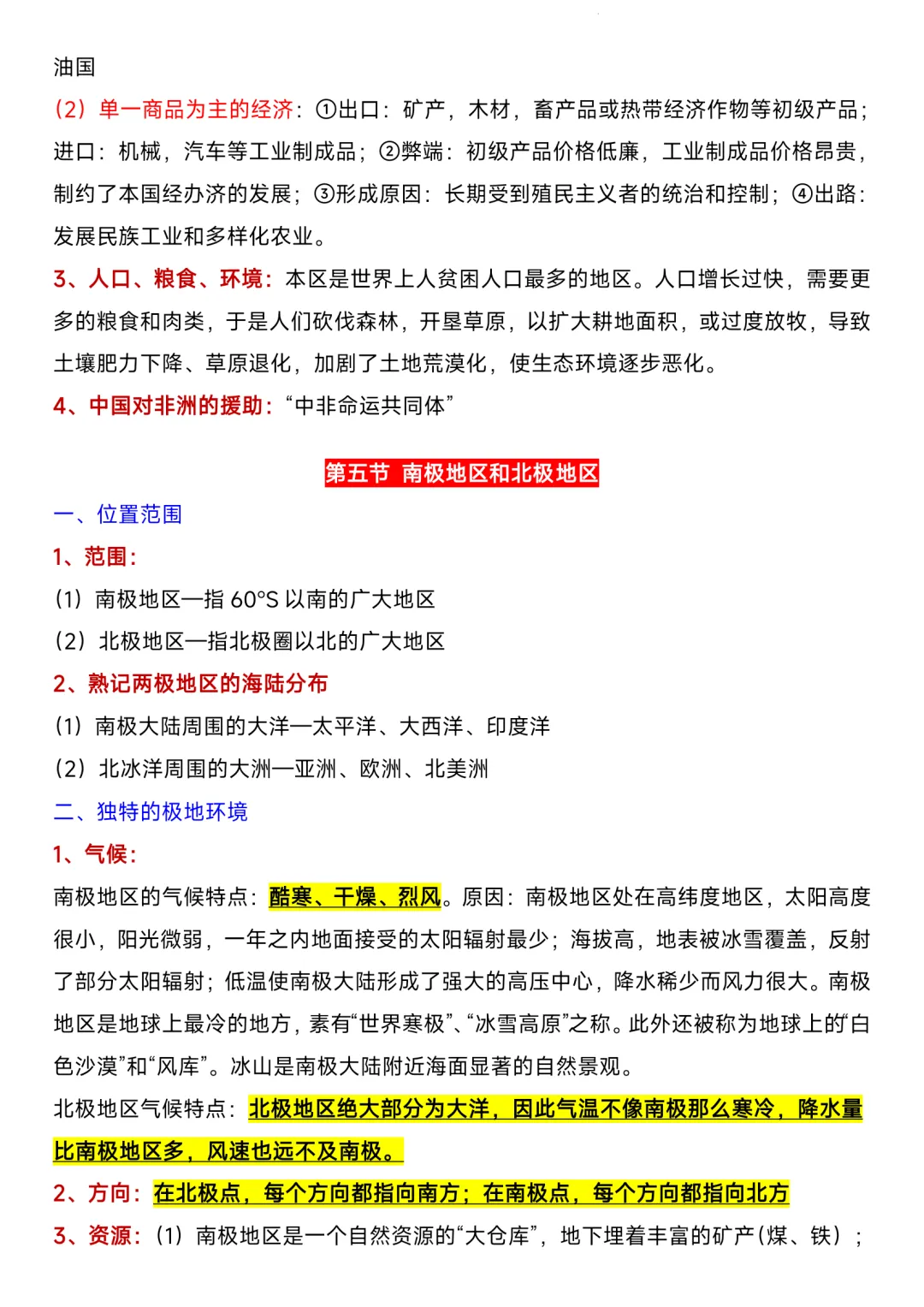 2026年最新版商务星球版七下地理知识归纳,有完整电子版可打印,学霸学习好帮手,建议家长打印,学霸人手一份!