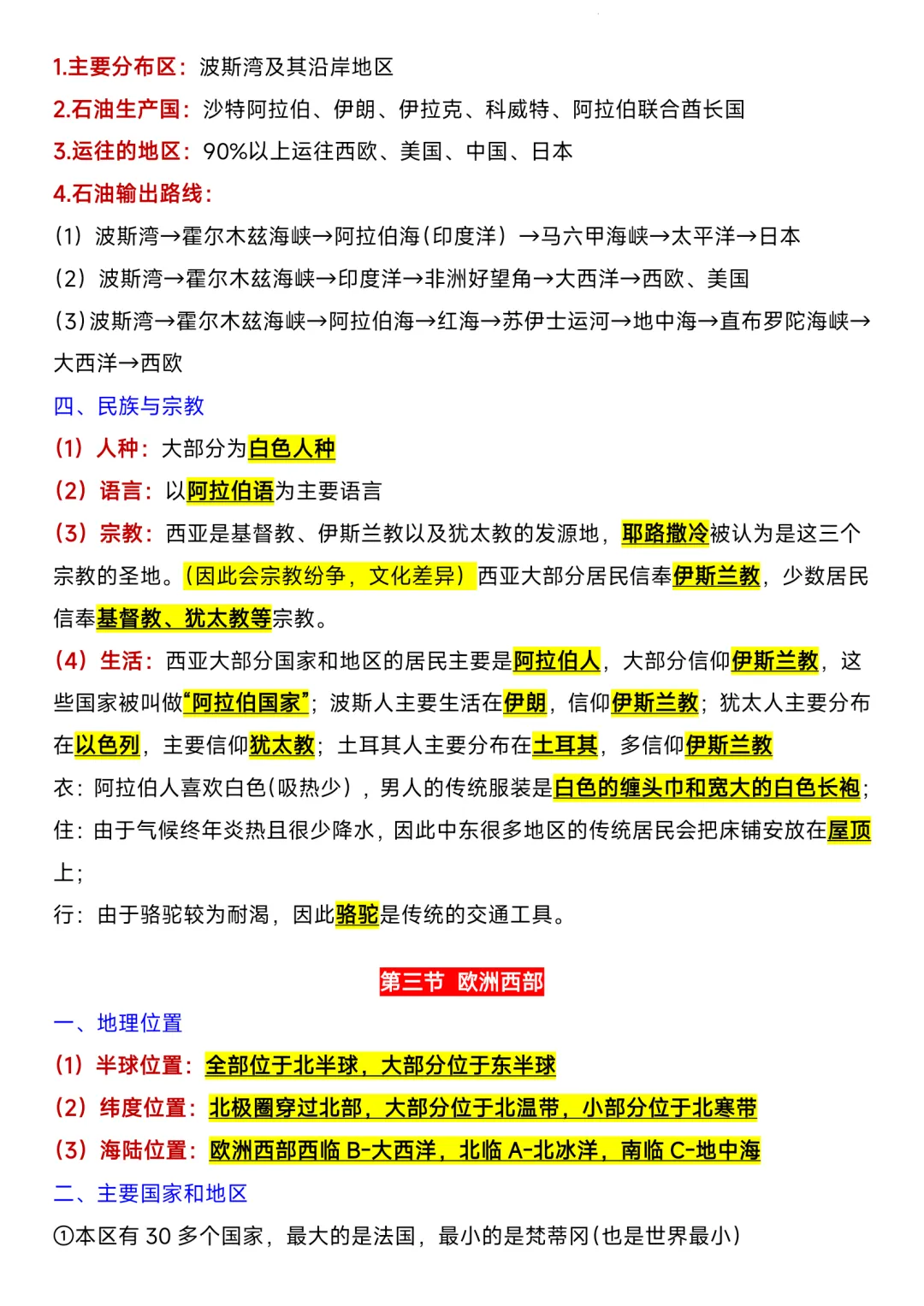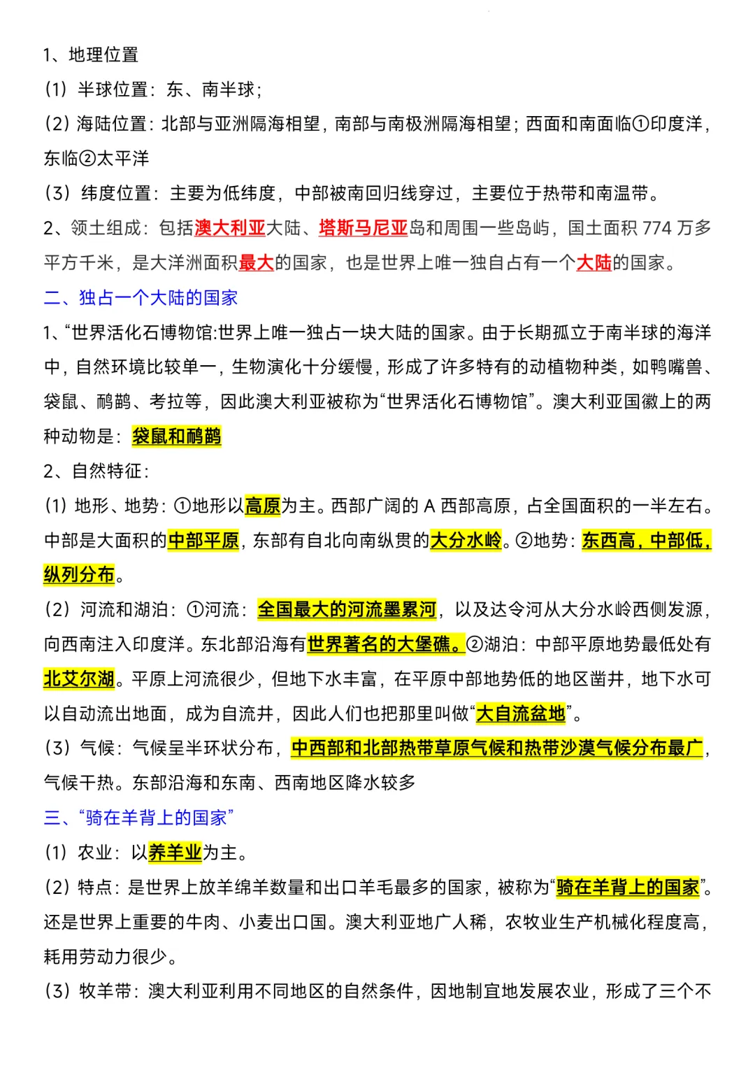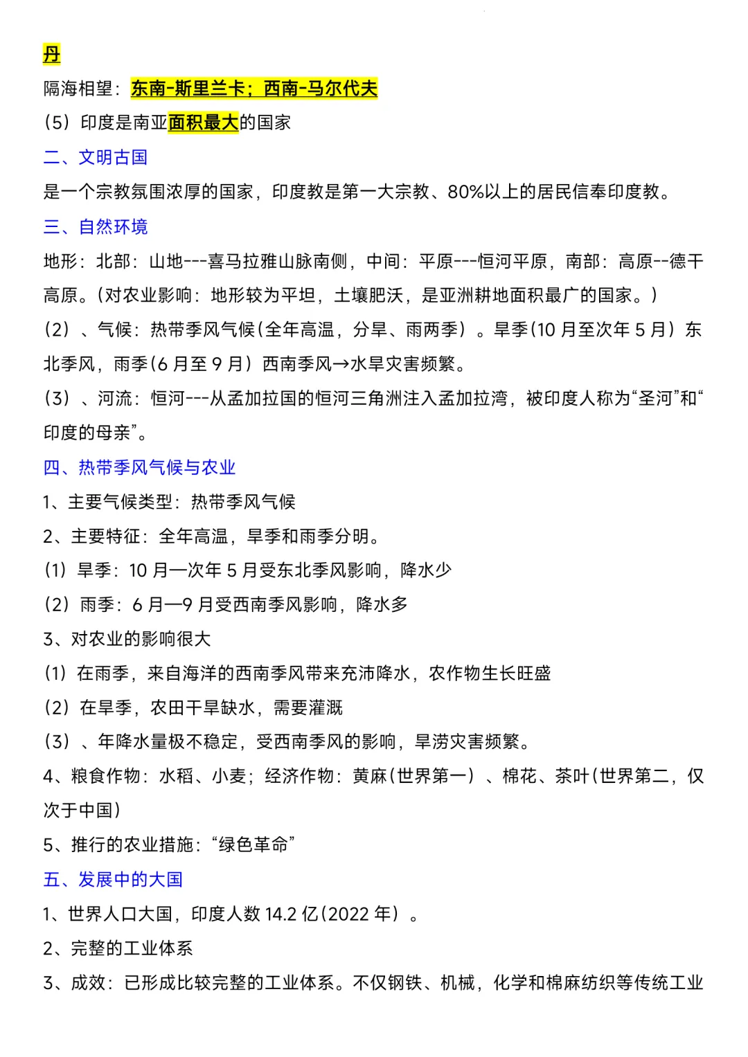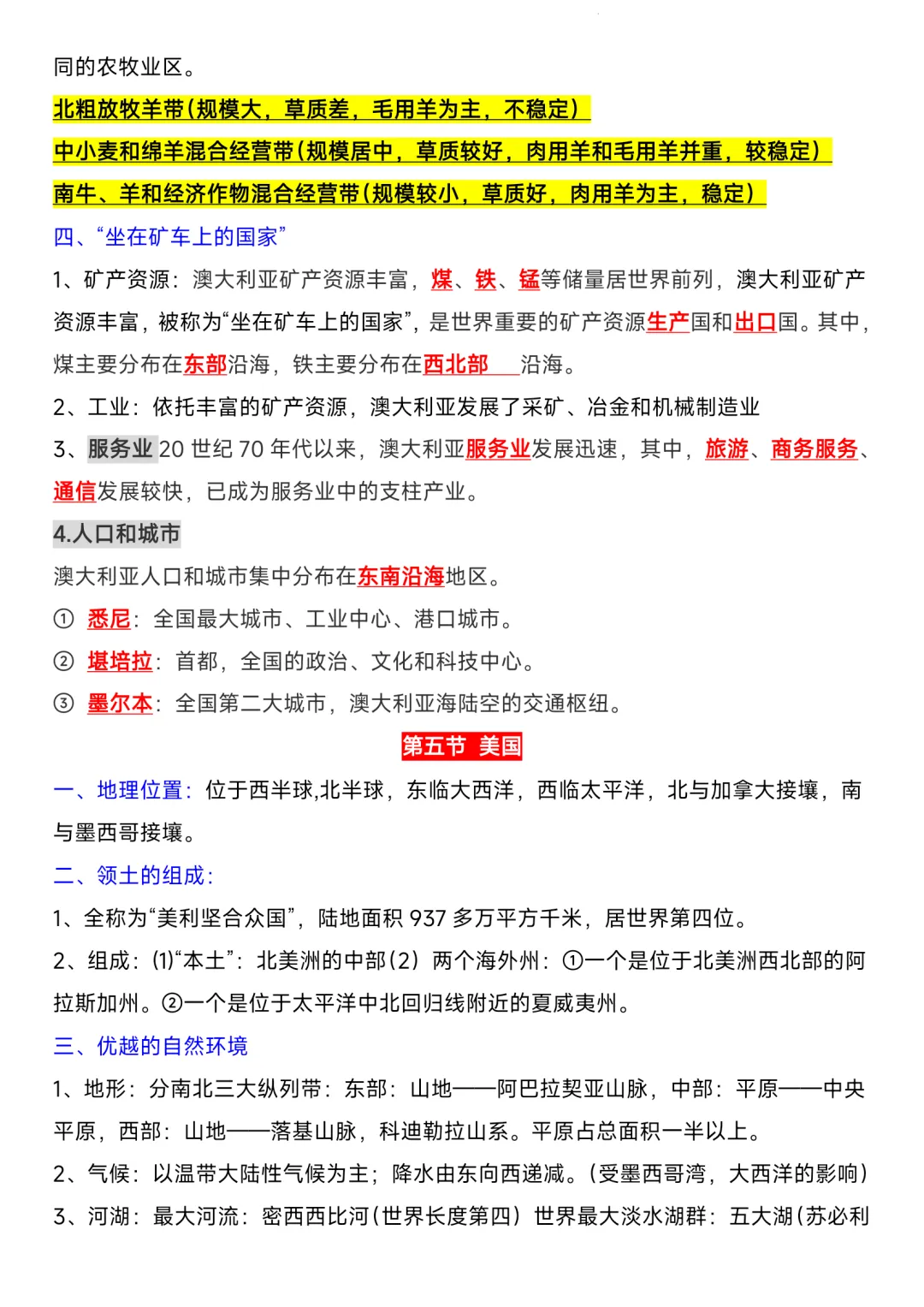2026年最新版商务星球版七下地理知识归纳,有完整电子版可打印,学霸学习好帮手,建议家长打印,学霸人手一份!