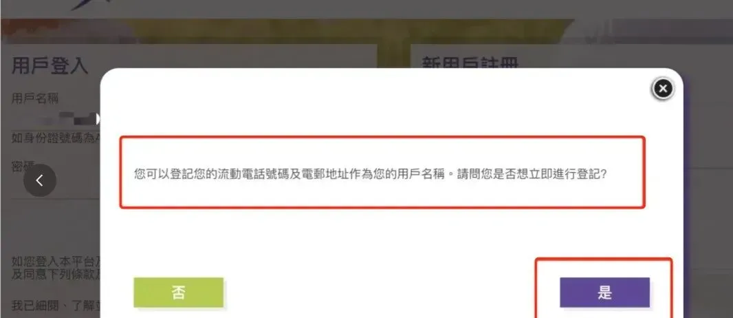 輸入”手機號碼”和”電郵”作為用戶名,成功登記電郵後,即可使用”電郵”作為用戶名登錄