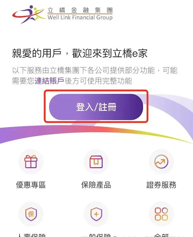 進入App頁面後,點擊“登入/註冊”