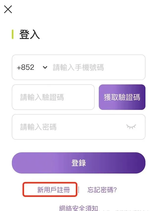 2.登入页点击“新用户注册”