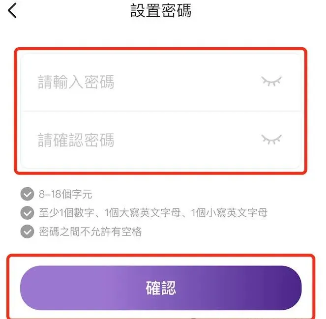 根據頁面提示設置8-18位密碼,“確認”後,即註冊成功