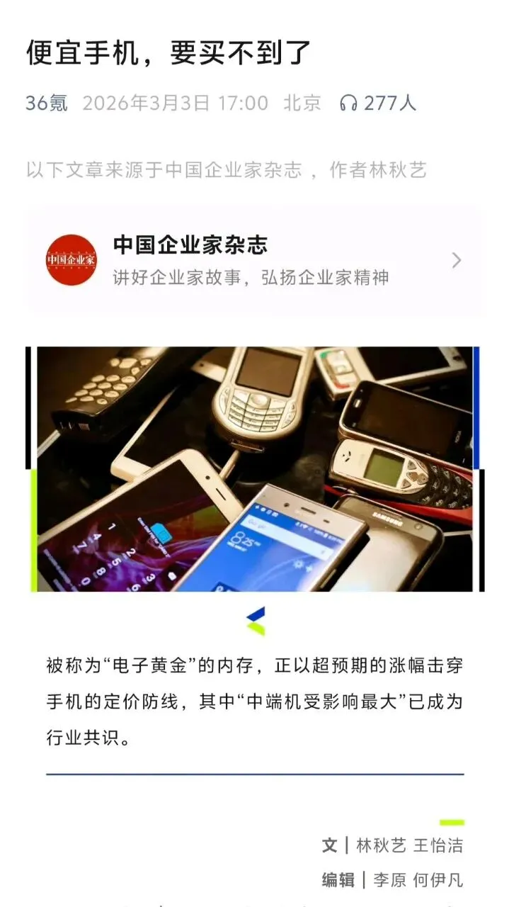 行业的方向看得更清楚了,千元机的空间在缩,利润太薄,品牌会撤出一部分,资源往上集中,中端成为主力,整体价格中枢上移,存储紧缺没缓解,AI研发持续投入,存量竞争长期拉扯,终端零售价被这些因素一起托着,对消费者来说,便宜又均衡又好用的款式变少了,筛选成本变高了,苹果靠着稳定定价和产品完成度接住更多份额。