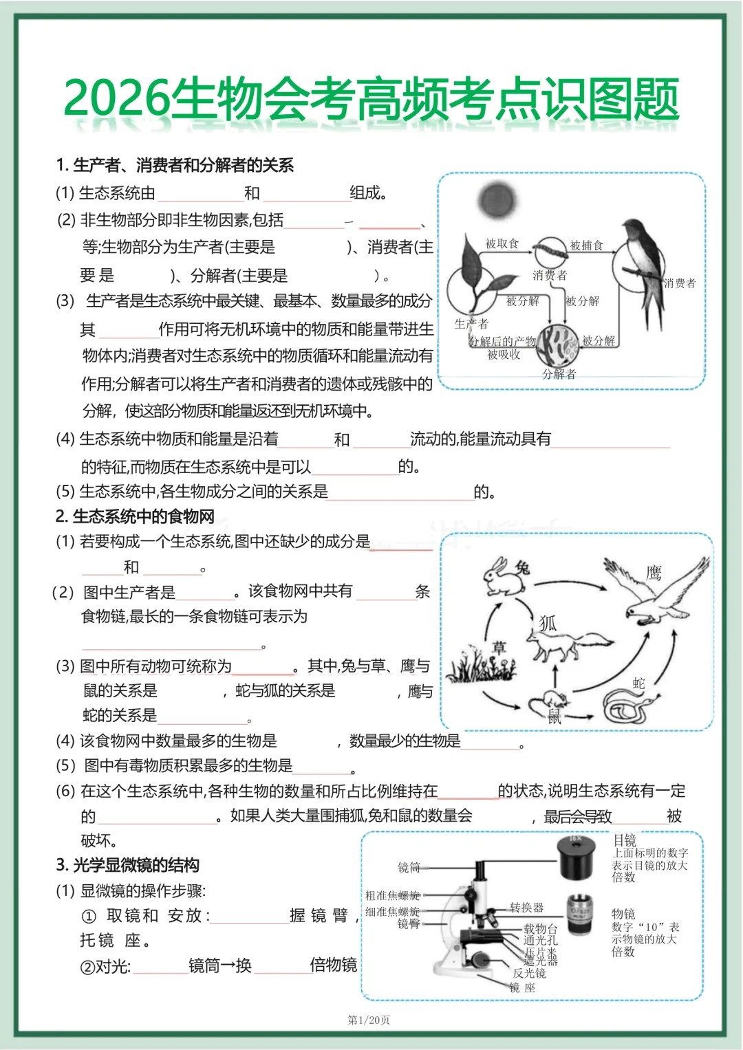 2026年最新版生物会考高频考点识图题,有完整电子版可打印,学霸学习好帮手,建议家长打印,学霸人手一份!