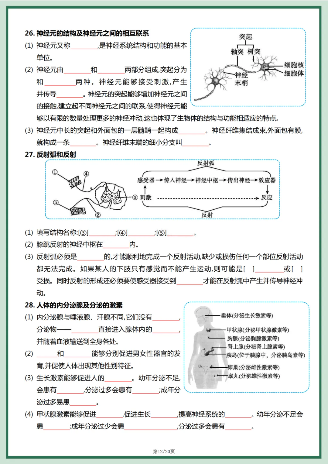 这份资料紧扣课本考点,把细胞结构、血液循环、反射弧、生态系统、遗传图解等必考识图题全部汇总,每一张图都标注关键结构和必背知识点,一看就懂、一背就会。不用再翻厚重课本,不用盲目刷题,考前重点看这些,效率直接翻倍。