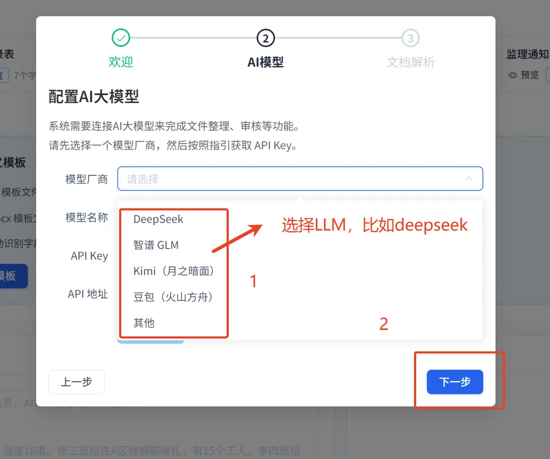 点开页面上「模型厂商」的下拉框,选一个。目前支持: