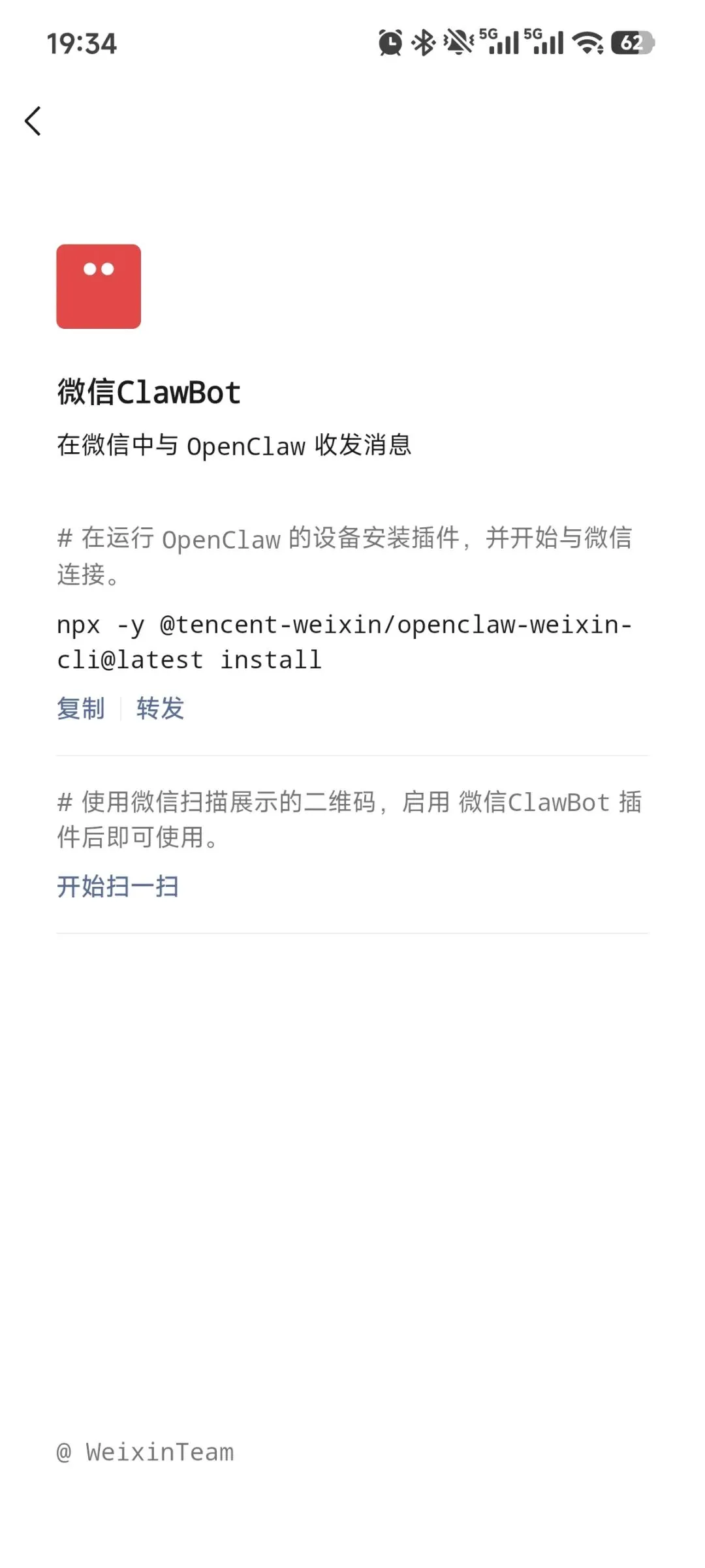 2026年3月22日,腾讯正式官宣微信推出全新官方插件ClawBot,该插件支持无缝接入OpenClaw系统,用户仅需通过扫码或复制指令的简单操作,就能完成OpenClaw与微信的绑定。成功连接后,用户可直接在微信聊天界面中,快速调用专属的“龙虾”智能工具,实现高效的互动操作。