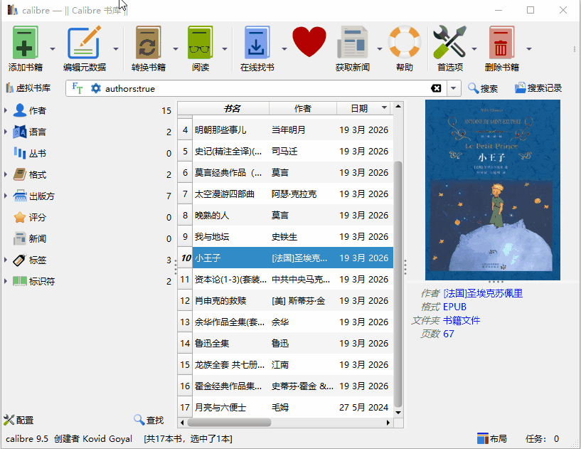 一款用于管理电子书的工具,支持转换、整理、阅读、编辑元数据等多种操作,适合用来统一管理本地电子书资源。
