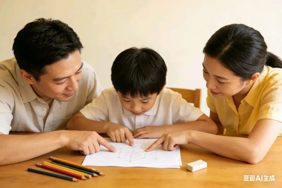 孩子写完作业,不要先看答案对不对,先翻他的草稿纸:步骤写全了吗?画图规范了吗?如果答案对但草稿纸乱糟糟,一定要让孩子重新整理,养成严谨习惯;