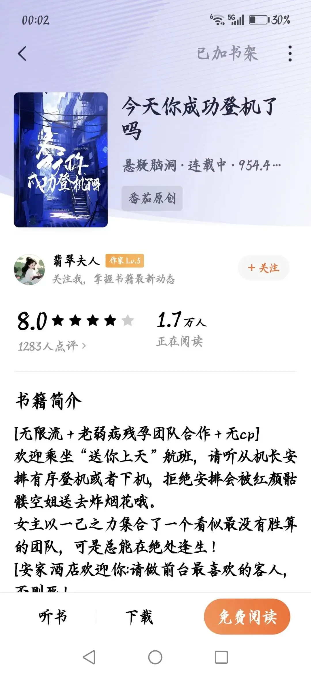 《今天你成功登机了吗》,作者翡翠夫人,在🍅,闯关者们的通行工具是飞机,住宿是酒店里面,这个是前两年看的剧情不是特别记得了,不过被我看完的,肯定都是当初觉得很好看的。