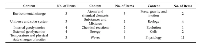 在确定了课程文件之后,研究团队通过三个阶段的文献分析来筛选内容。第一阶段,列出每个文件中与物理和自然科学领域相关的所有内容和技能。第二阶段,为验证这些内容和技能之间的对应关系,进行跨文献比较,仅选择课程指南和基本学习中与 BFSL 存在一定相关性的内容和技能。例如,将两个课程文件中与 “生态” 主题相关的内容和技能,与 BFSL 中涉及同一主题的内容进行关联,而与文件无关的内容和技能则未纳入试点仪器的题目中。第三阶段,剔除相似的内容和技能,选择标准主要考虑 PASEO 的能力要求。这一步骤对于题目开发至关重要,因为相似内容和技能的存在可能导致题目之间产生关联性,使得一个题目的答案可能成为另一个题目的线索,这与评估工具的设计初衷不符。