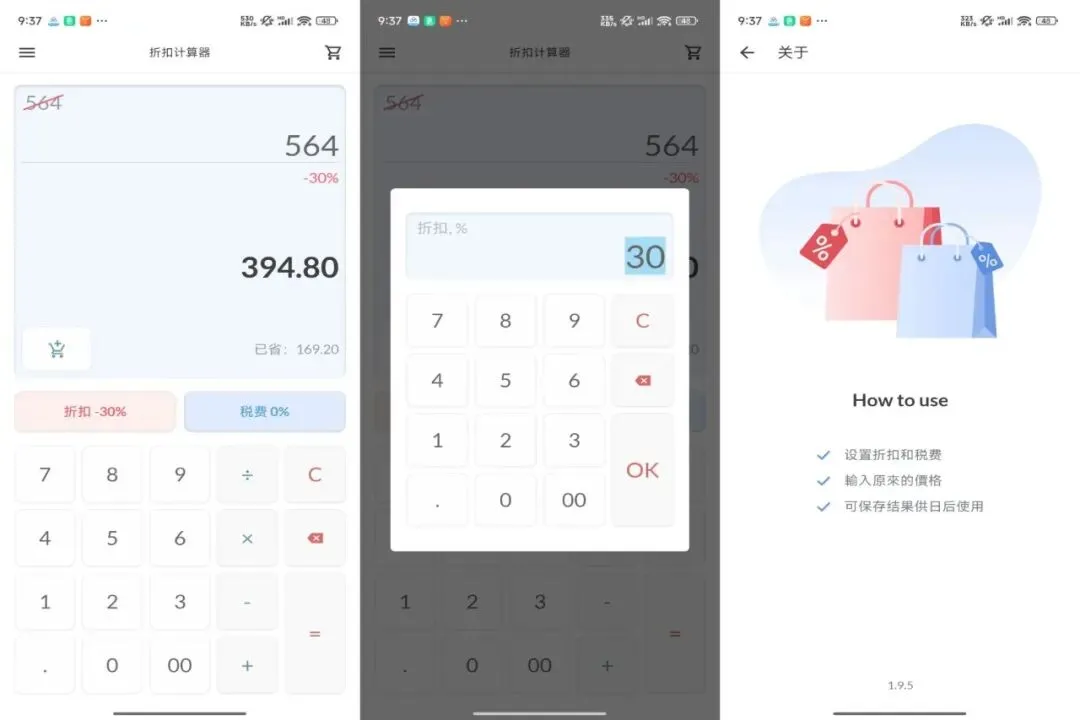 折扣计算器,省钱利器,明明白白消费!专为购物设计的计算工具,可以快速计算各种折扣后的价格,轻松掌握省钱之道。界面简洁,操作方便,是你的购物好帮手!