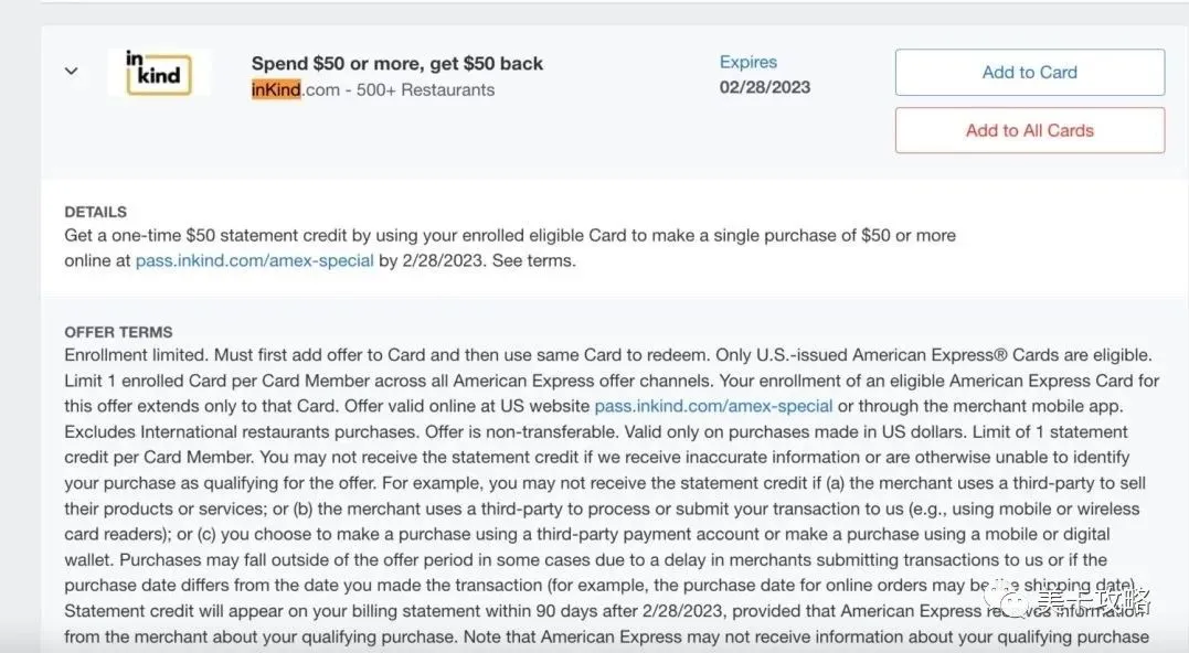 你可以使用我们的加 Offer 插件(免费)或者 MaxRewards(首月免),把 offer 加到每张卡上,这样就可以白嫖好几次了。如果直接加,就只能加到一张 amex 卡上,其他会消失哦。注意,使用这两种办法的大前提都是你需要看得到这些 offer,破除的只是一种 offer 只能加一张卡的限制,并不能帮你“无中生有”。