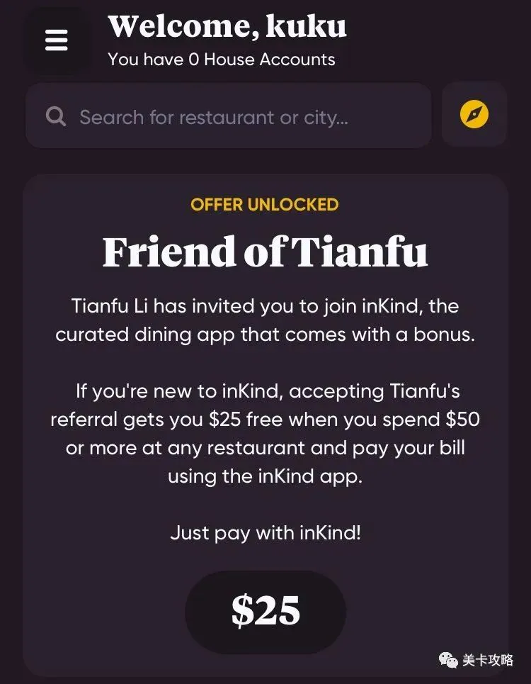 【温暖升级:各类折扣不再叠加】餐馆买单App inKind介绍(可充值)【注册送$25】