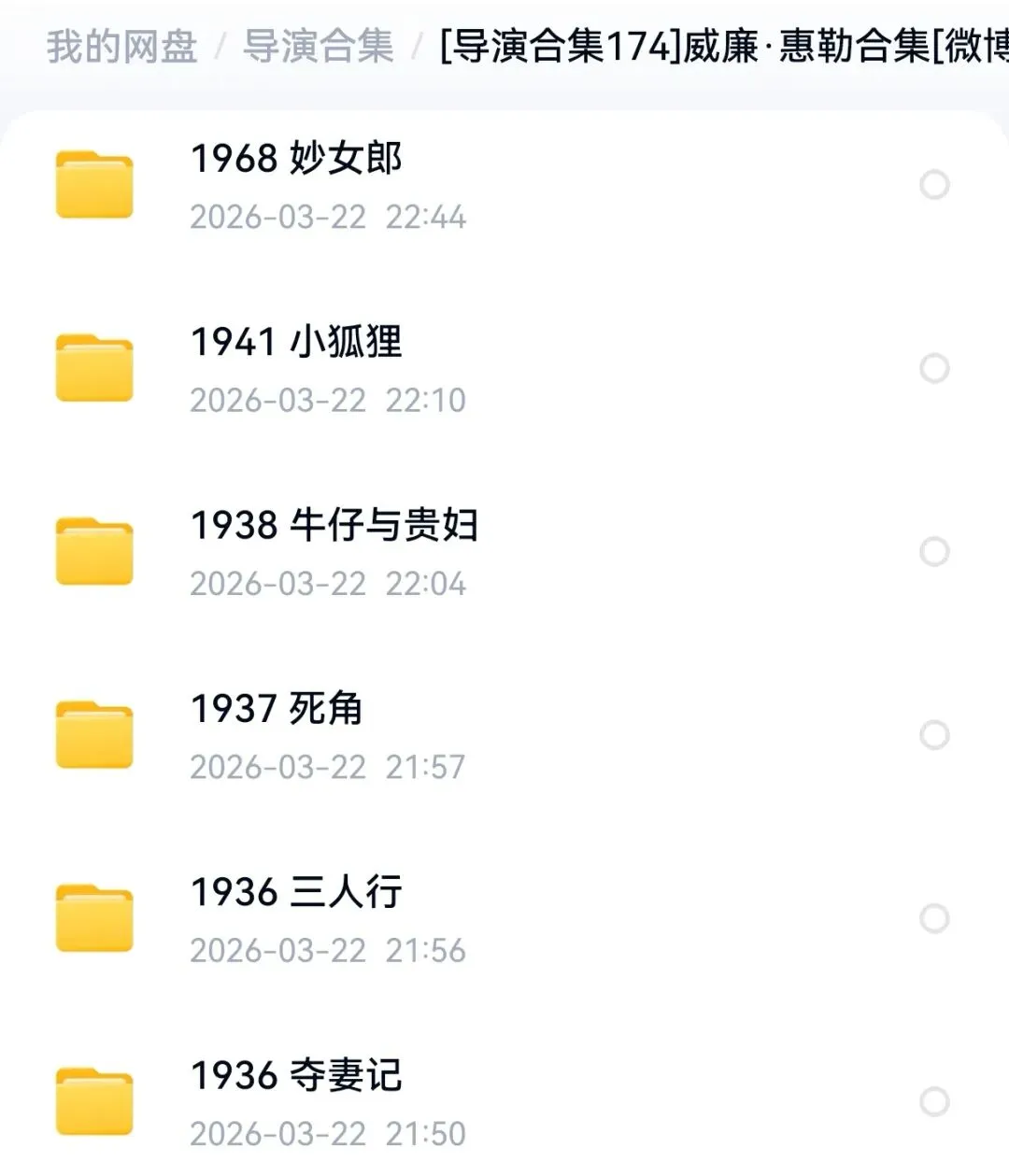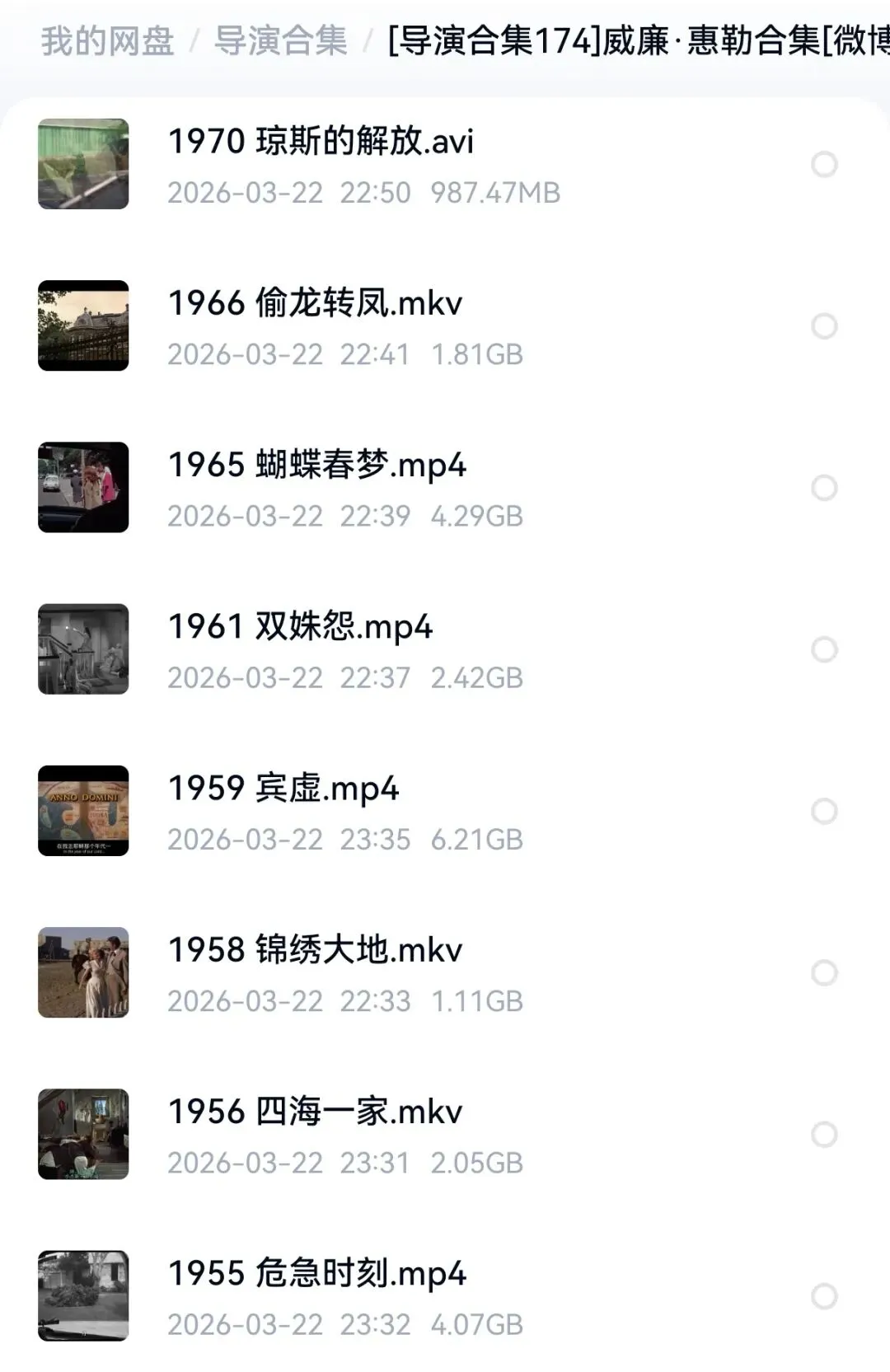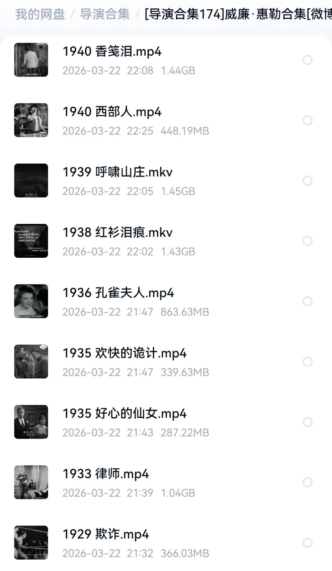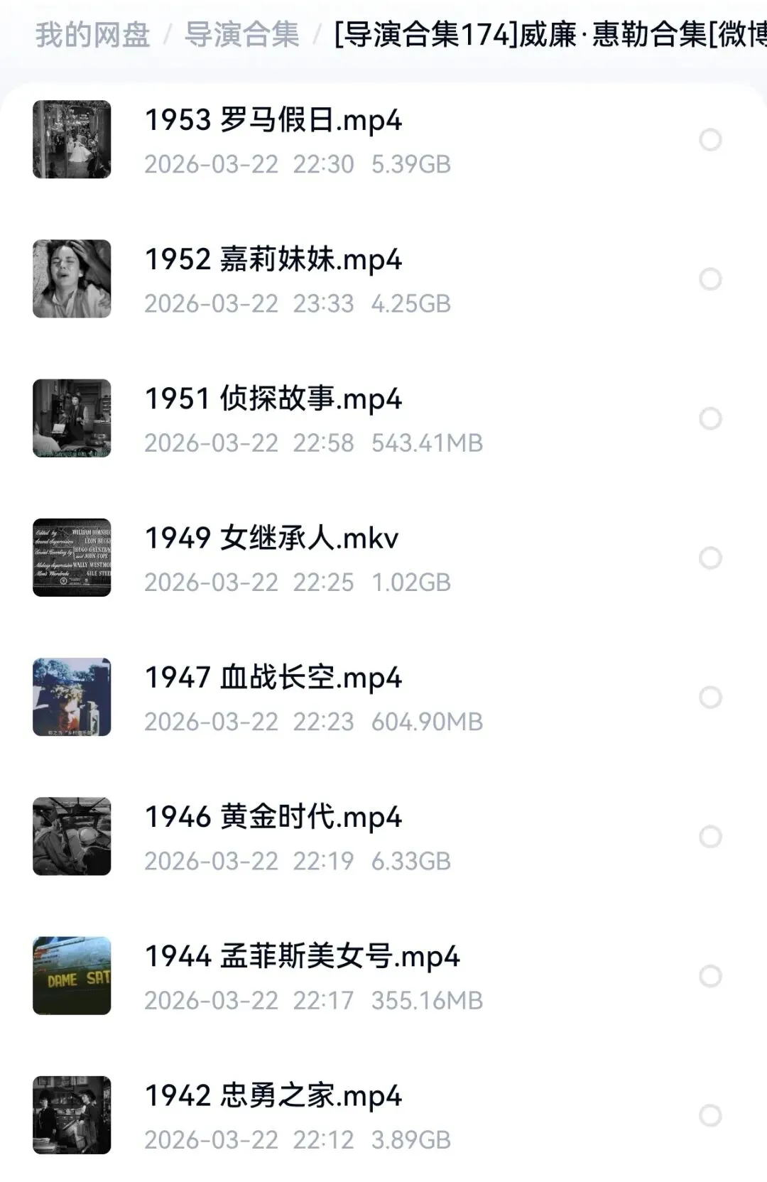 俗话说,有图有真相,本期发布的威廉·惠勒电影合集,共 31 部,具体片目请参见下列截图——