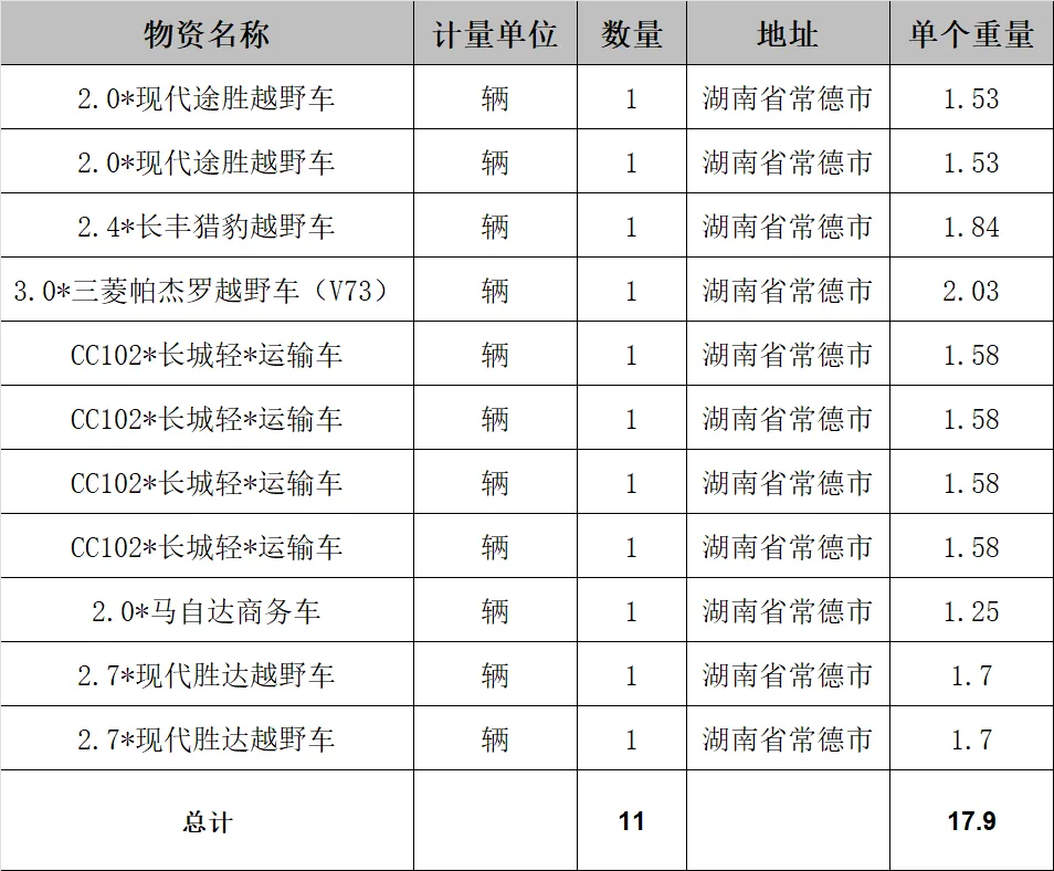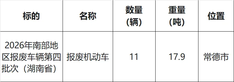 【报废车辆】融通资源2026年南部地区报废车辆第四批次(湖南省)项目公告—11辆