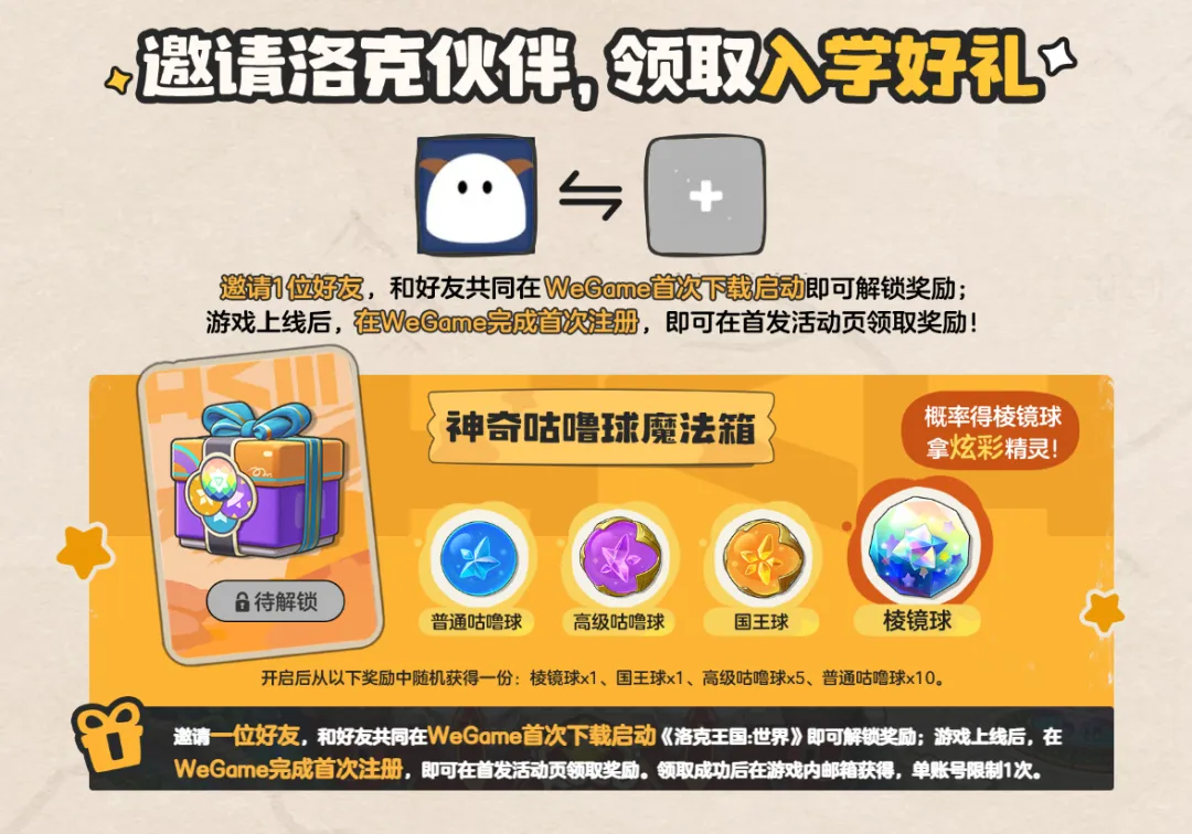 3月23—25日,邀请1位好友完成预下载,双方各得1个神奇咕噜球魔法箱