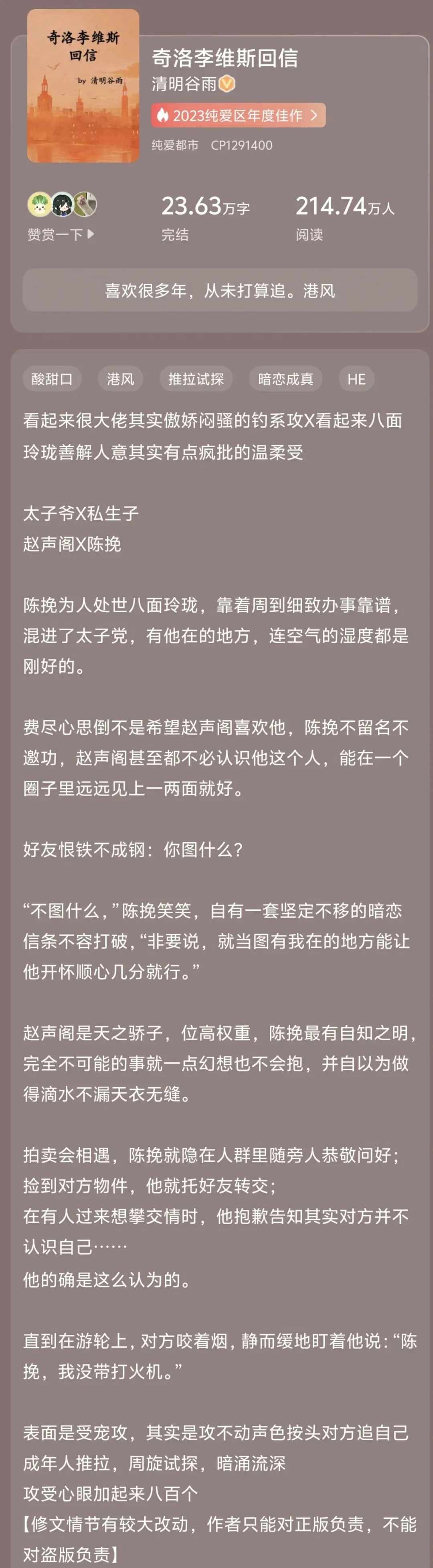 【强推·清明谷雨合集】《奇洛李维斯回信》by清明谷雨《小潭山没有天文台》 (未删减完整版txt+蕃外全+新番+剧)