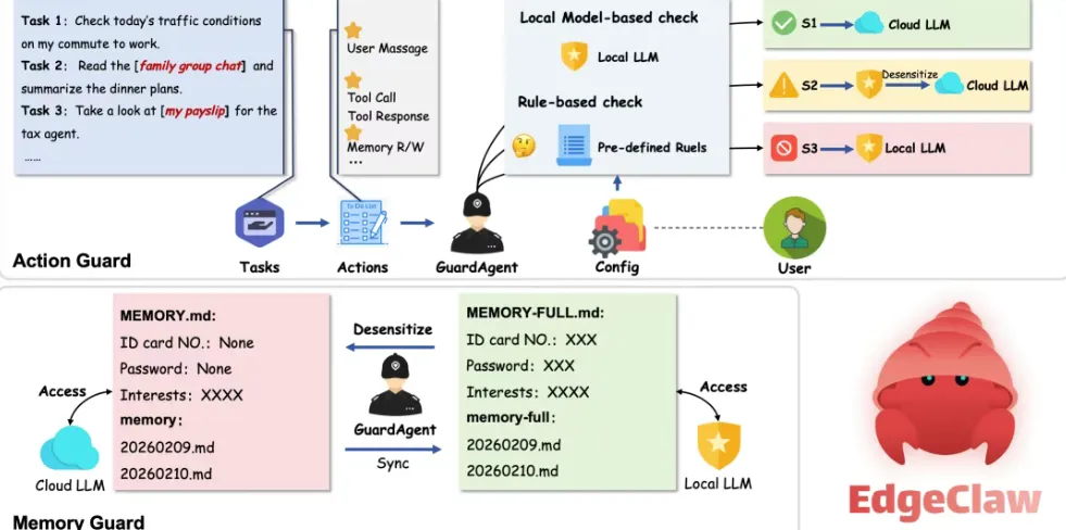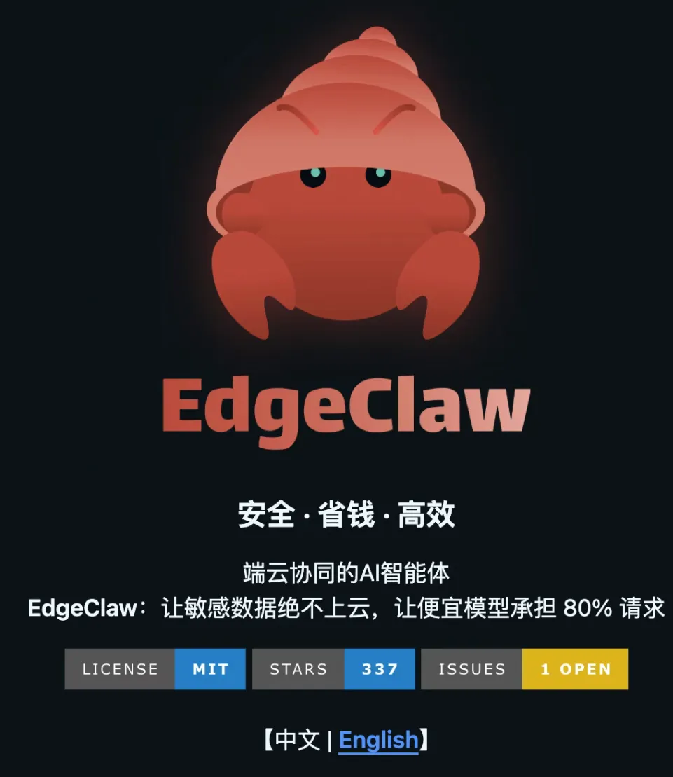 最近,来自清华、人大、面壁智能等多家机构联手开源了一个项目,叫EdgeClaw。简单说,它就是一只会”看眼色行动”的小龙虾——能分辨什么数据该留在本地,什么可以上云,断网也照样能工作。